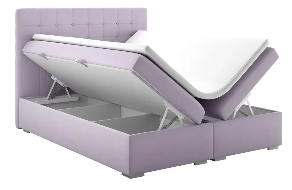 Niezależne materace ze sprężynami typu bonell oraz pianką T-25 jak i wierzchni topper z pianki T-21 zapewniają idealne dopasowanie do kształtu ciała. Dostęp do pojemnych schowków na pościel ułatwiają bezpieczne automaty. Duża wysokość powierzchni spania zmniejsza wysiłek wstawania z łóżka (co jest doskonałą informacja dla osób starszych) oraz sprawia, że w strefie snu znajduje się znacznie mniej roztoczy i zanieczyszczeń, niż w przypadku łóżek niższych. Nie licząc wezgłowia cała powierzchnia łóżka to materac dzięki czemu łóżko zachowuje kompaktowe rozmiary ułatwiając jego wpasowanie nawet w ciaśniejsze sypialnie mieszkań miejskiej dżungli.