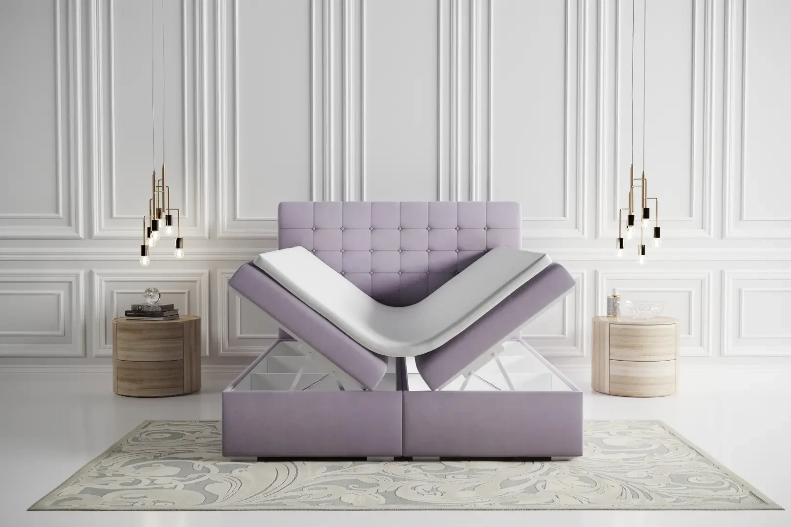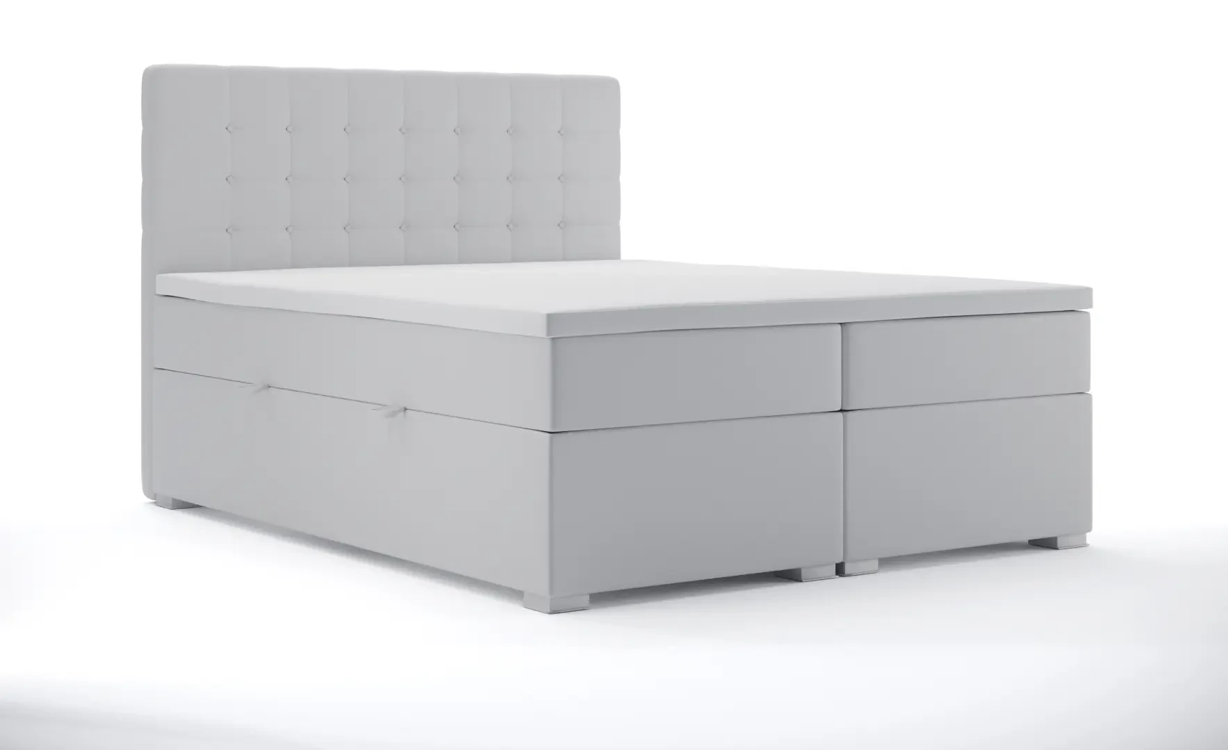 Niezależne materace ze sprężynami typu bonell oraz pianką T-25 jak i wierzchni topper z pianki T-21 zapewniają idealne dopasowanie do kształtu ciała. Dostęp do pojemnych schowków na pościel ułatwiają bezpieczne automaty. Duża wysokość powierzchni spania zmniejsza wysiłek wstawania z łóżka (co jest doskonałą informacja dla osób starszych) oraz sprawia, że w strefie snu znajduje się znacznie mniej roztoczy i zanieczyszczeń, niż w przypadku łóżek niższych. Nie licząc wezgłowia cała powierzchnia łóżka to materac dzięki czemu łóżko zachowuje kompaktowe rozmiary ułatwiając jego wpasowanie nawet w ciaśniejsze sypialnie mieszkań miejskiej dżungli.