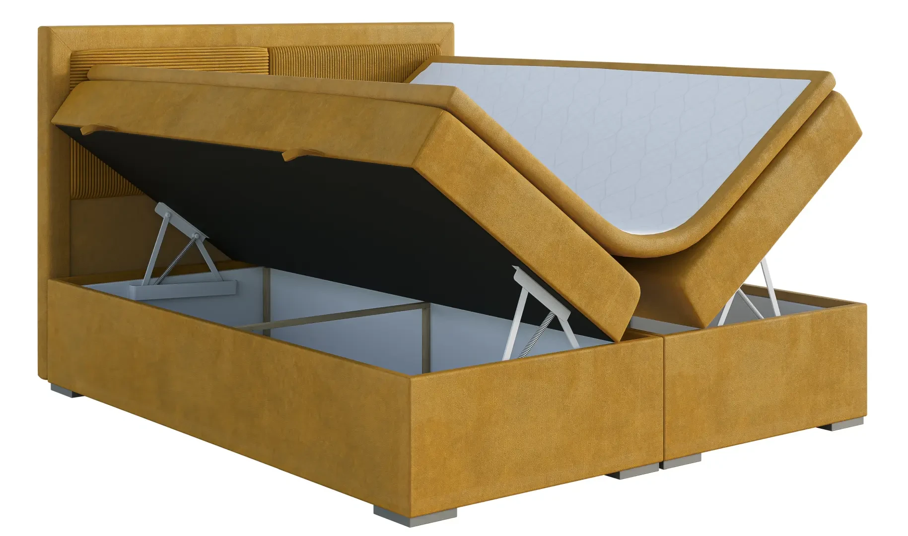 Niezależne materace ze sprężynami typu bonell oraz pianką T-25 jak i wierzchni topper z pianki T-21 zapewniają idealne dopasowanie do kształtu ciała. Dostęp do pojemnych schowków na pościel ułatwiają bezpieczne automaty. Duża wysokość powierzchni spania zmniejsza wysiłek wstawania z łóżka (co jest doskonałą informacja dla osób starszych) oraz sprawia, że w strefie snu znajduje się znacznie mniej roztoczy i zanieczyszczeń, niż w przypadku łóżek niższych. Nie licząc wezgłowia cała powierzchnia łóżka to materac dzięki czemu łóżko zachowuje kompaktowe rozmiary ułatwiając jego wpasowanie nawet w ciaśniejsze sypialnie mieszkań miejskiej dżungli.