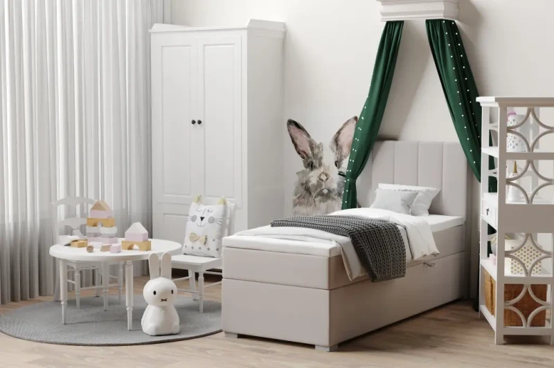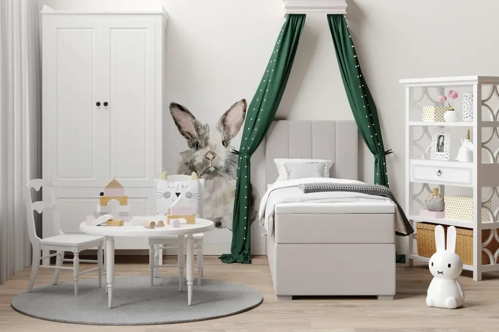 Łóżko kontynentalne do pokoju młodzieżowego Puro z pojemnikiem 90x200 jednoosobowe tapicerowane