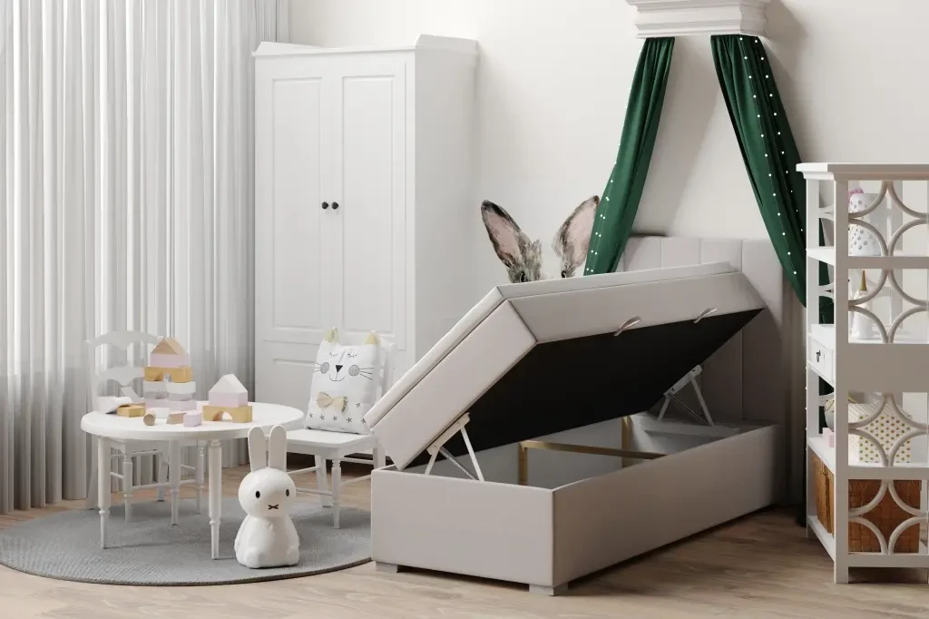 - Pojemny schowek - pozwoli zmieścić pościel i topper (opcjonalnie)