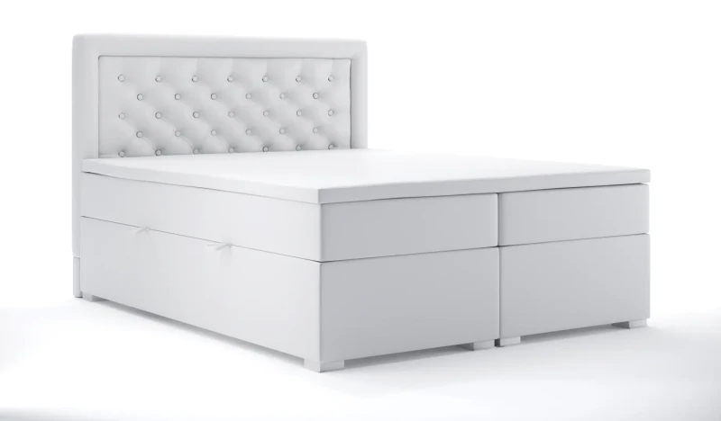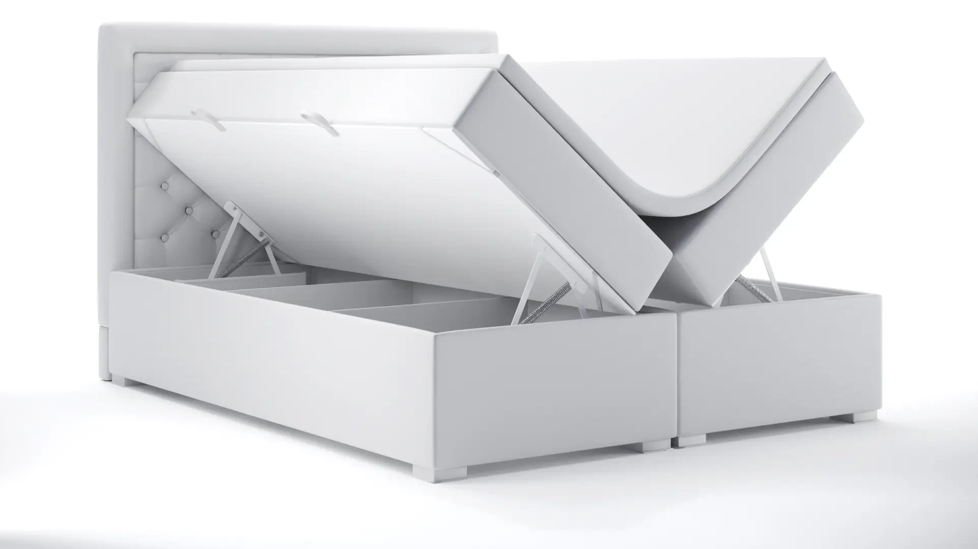 Niezależne materace ze sprężynami typu bonell oraz pianką T-25 jak i wierzchni topper z pianki T-21 zapewniają idealne dopasowanie do kształtu ciała. Dostęp do pojemnych schowków na pościel ułatwiają bezpieczne automaty. Duża wysokość powierzchni spania zmniejsza wysiłek wstawania z łóżka (co jest doskonałą informacja dla osób starszych) oraz sprawia, że w strefie snu znajduje się znacznie mniej roztoczy i zanieczyszczeń, niż w przypadku łóżek niższych. Nie licząc wezgłowia cała powierzchnia łóżka to materac dzięki czemu łóżko zachowuje kompaktowe rozmiary ułatwiając jego wpasowanie nawet w ciaśniejsze sypialnie mieszkań miejskiej dżungli.