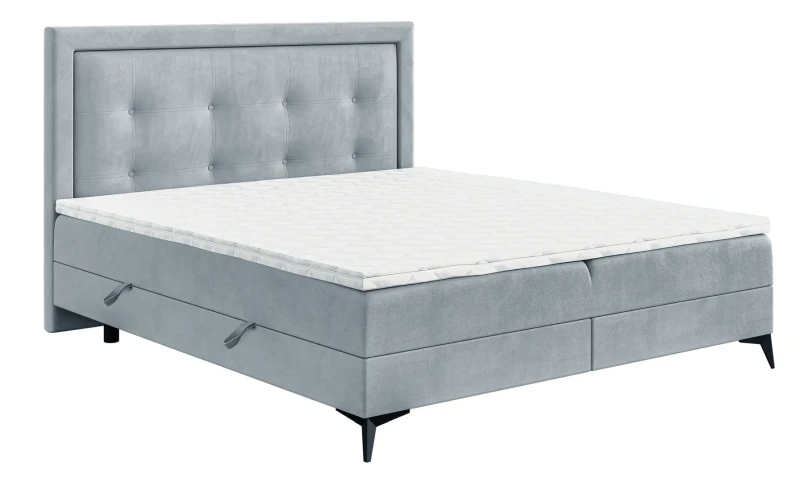 Niezależne materace ze sprężynami typu bonell oraz pianką T-25 jak i wierzchni topper z pianki T-21 zapewniają idealne dopasowanie do kształtu ciała. Dostęp do pojemnych schowków na pościel ułatwiają bezpieczne automaty. Duża wysokość powierzchni spania zmniejsza wysiłek wstawania z łóżka (co jest doskonałą informacja dla osób starszych) oraz sprawia, że w strefie snu znajduje się znacznie mniej roztoczy i zanieczyszczeń, niż w przypadku łóżek niższych. Nie licząc wezgłowia cała powierzchnia łóżka to materac dzięki czemu łóżko zachowuje kompaktowe rozmiary ułatwiając jego wpasowanie nawet w ciaśniejsze sypialnie mieszkań miejskiej dżungli.