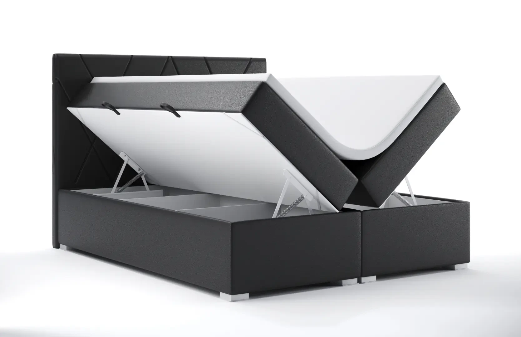 Niezależne materace ze sprężynami typu bonell oraz pianką T-25 jak i wierzchni topper z pianki T-21 zapewniają idealne dopasowanie do kształtu ciała. Dostęp do pojemnych schowków na pościel ułatwiają bezpieczne automaty. Duża wysokość powierzchni spania zmniejsza wysiłek wstawania z łóżka (co jest doskonałą informacja dla osób starszych) oraz sprawia, że w strefie snu znajduje się znacznie mniej roztoczy i zanieczyszczeń, niż w przypadku łóżek niższych. Nie licząc wezgłowia cała powierzchnia łóżka to materac, dzięki czemu łóżko zachowuje kompaktowe rozmiary ułatwiając jego wpasowanie nawet w ciaśniejsze sypialnie mieszkań miejskiej dżungli.