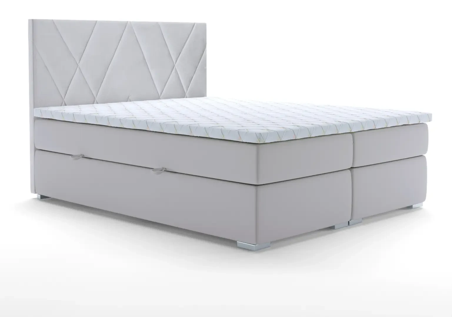 Niezależne materace ze sprężynami typu bonell oraz pianką T-25 jak i wierzchni topper z pianki T-21 zapewniają idealne dopasowanie do kształtu ciała. Dostęp do pojemnych schowków na pościel ułatwiają bezpieczne automaty. Duża wysokość powierzchni spania zmniejsza wysiłek wstawania z łóżka (co jest doskonałą informacja dla osób starszych) oraz sprawia, że w strefie snu znajduje się znacznie mniej roztoczy i zanieczyszczeń, niż w przypadku łóżek niższych. Nie licząc wezgłowia cała powierzchnia łóżka to materac, dzięki czemu łóżko zachowuje kompaktowe rozmiary ułatwiając jego wpasowanie nawet w ciaśniejsze sypialnie mieszkań miejskiej dżungli.