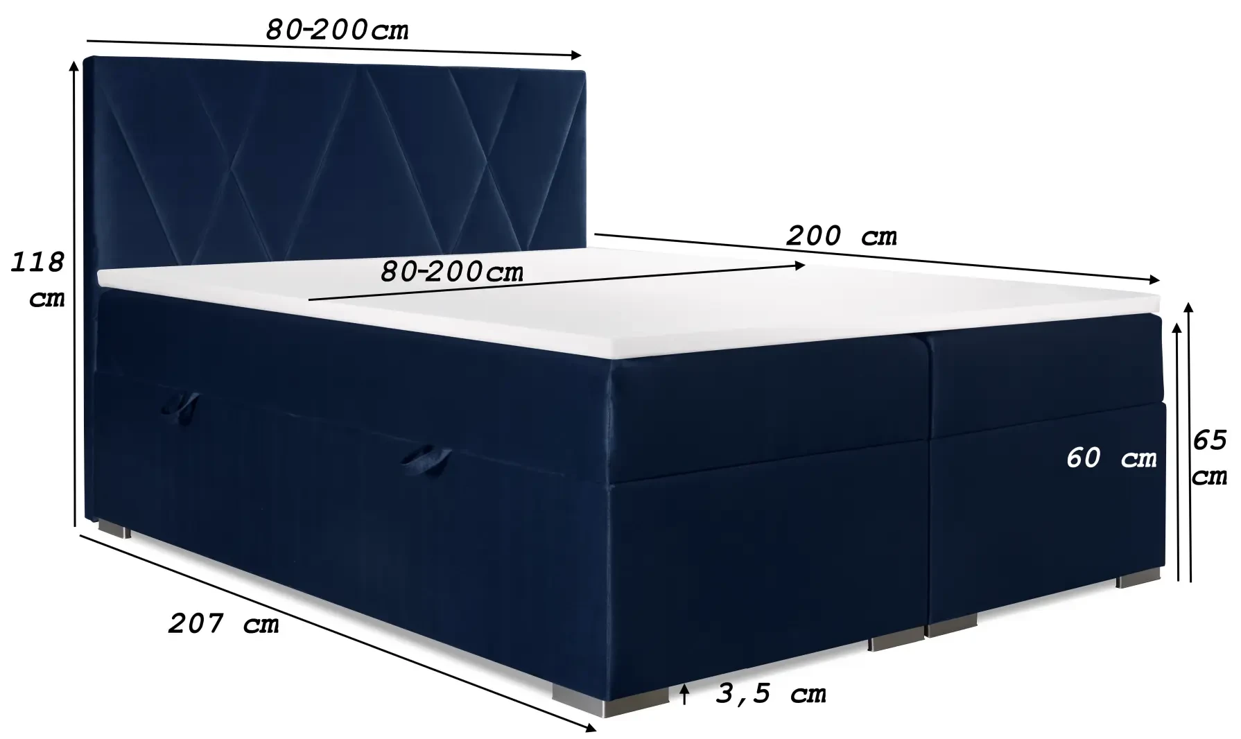 - Długość pod materac: 200 cm