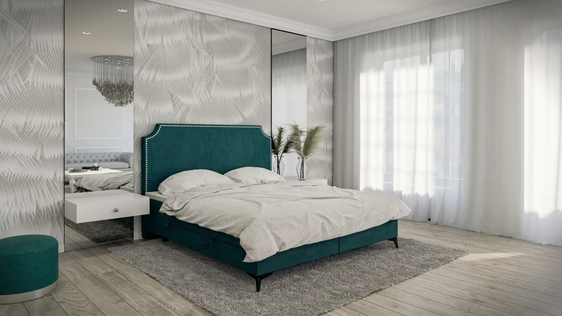Łóżko kontynentalne Lea z pojemnikami 160x200 dwuosobowe tapicerowane