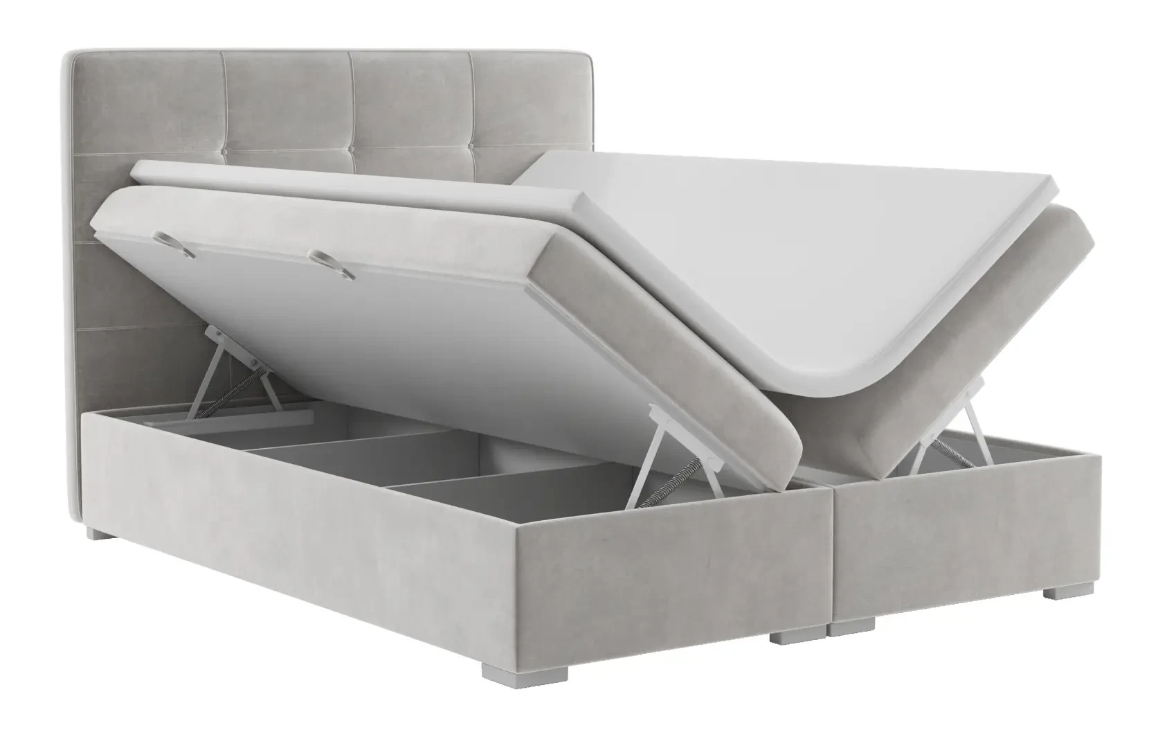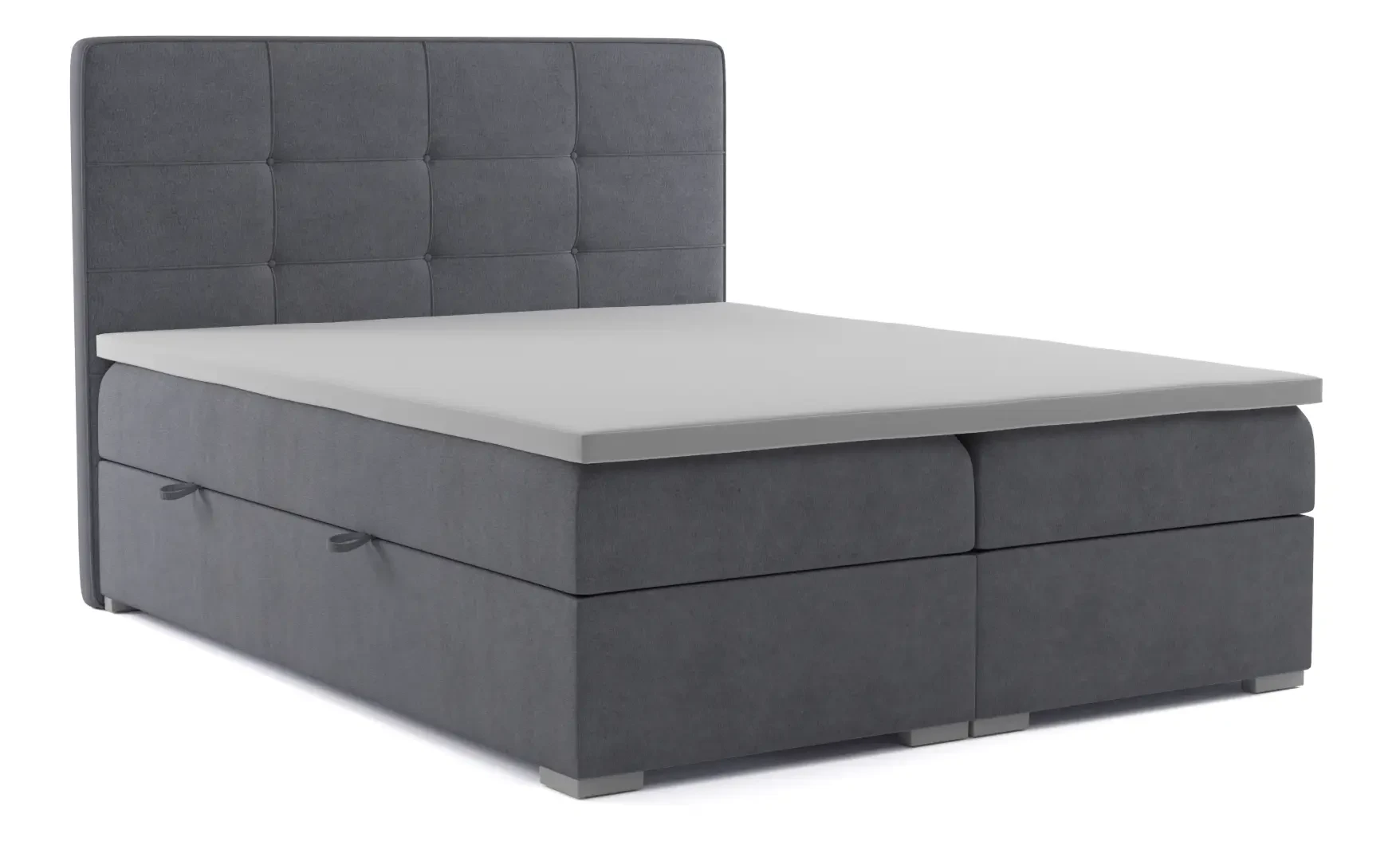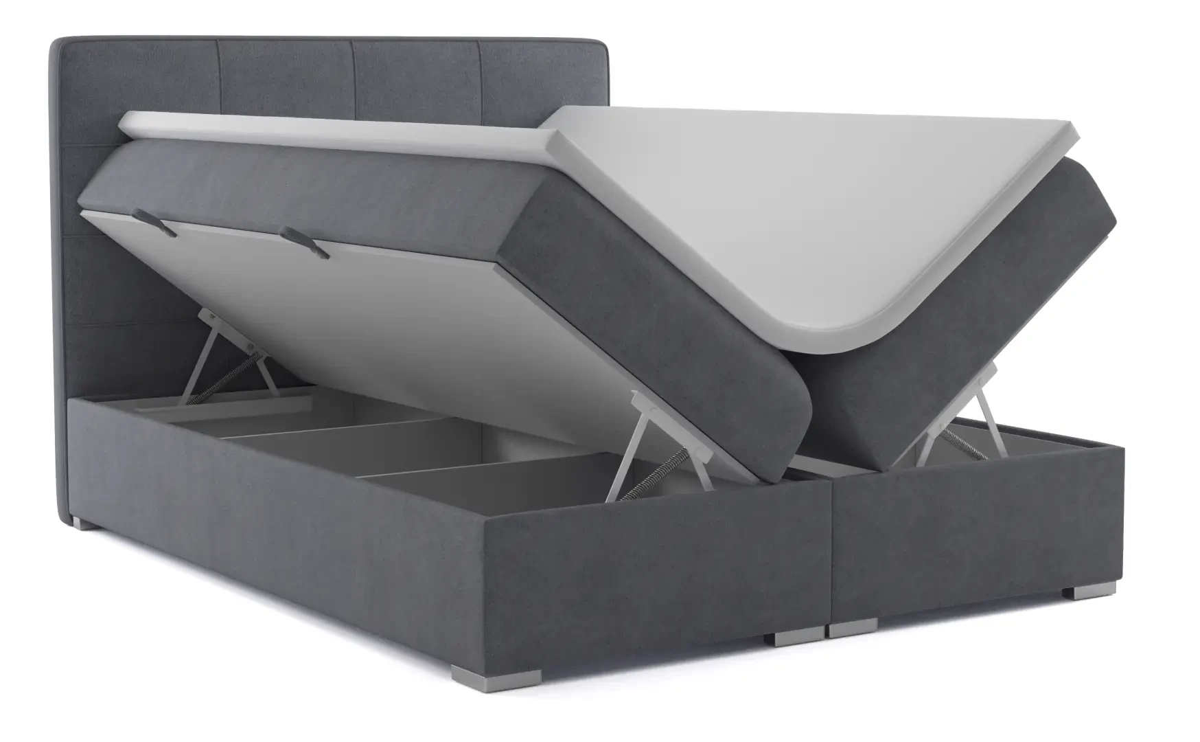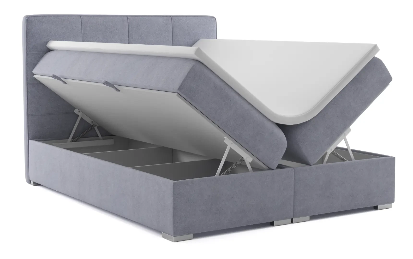 Niezależne materace ze sprężynami typu bonell oraz pianką T-25 jak i wierzchni topper z pianki T-21 zapewniają idealne dopasowanie do kształtu ciała. Dostęp do pojemnych schowków na pościel ułatwiają bezpieczne automaty. Duża wysokość powierzchni spania zmniejsza wysiłek wstawania z łóżka (co jest doskonałą informacja dla osób starszych) oraz sprawia, że w strefie snu znajduje się znacznie mniej roztoczy i zanieczyszczeń, niż w przypadku łóżek niższych. Nie licząc wezgłowia cała powierzchnia łóżka to materac dzięki czemu łóżko zachowuje kompaktowe rozmiary ułatwiając jego wpasowanie nawet w ciaśniejsze sypialnie mieszkań miejskiej dżungli.