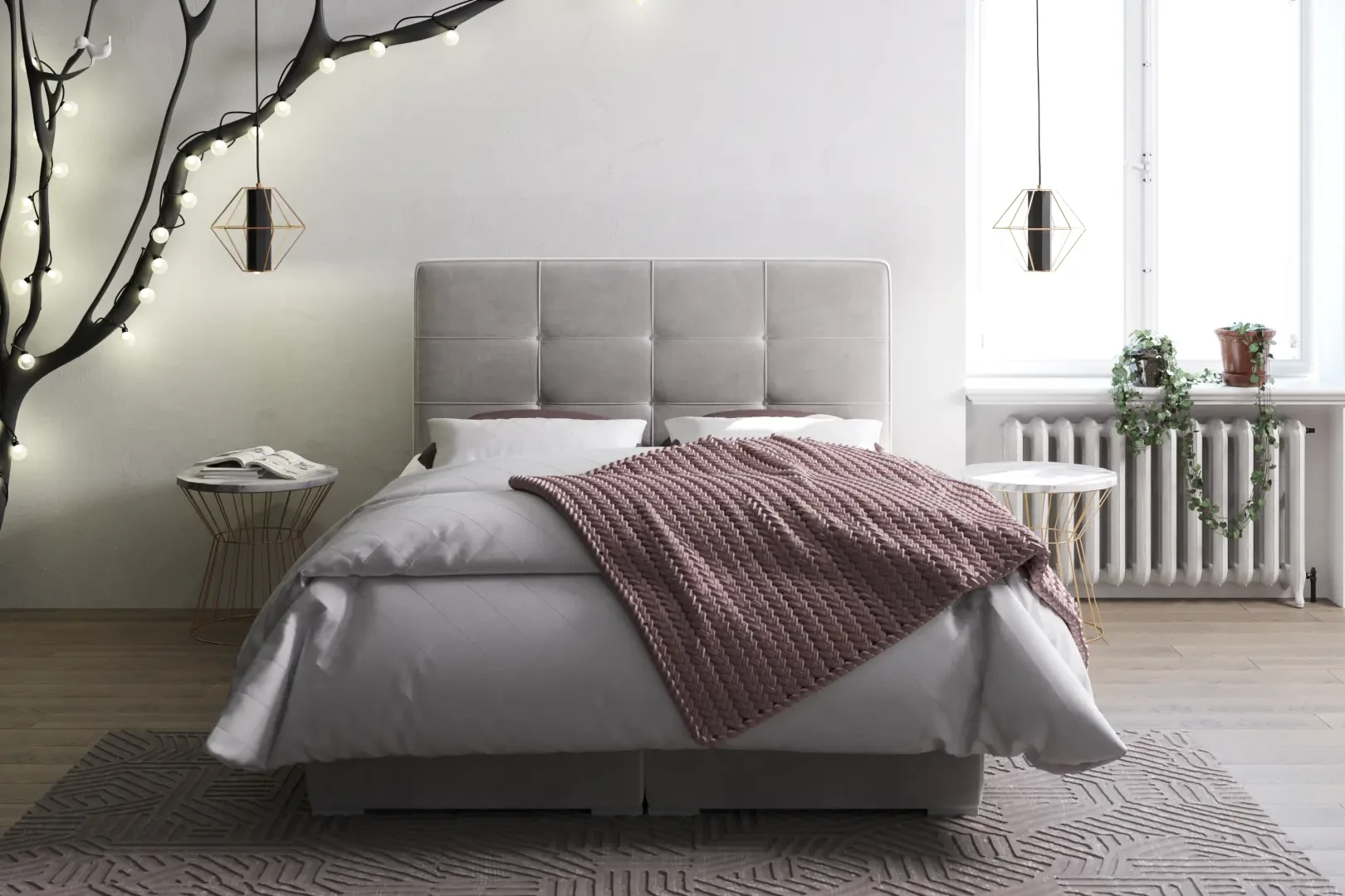 Łóżka kontynentalne z serii Loft z opcją pojemnika występują w aż 7 wariantach szerokości oraz wielu tkaninach do wyboru. Wariant o szerokości 140 cm dzięki swoim wymiarom idealnie sprawdzi się jako łóżko sypialniane dla dwóch osób dorosłych. Dzięki zastosowaniu pojedynczego materaca w węższych wersjach i oddzielnych materacy w szerszych stanowi wygodne posłanie i niezależny komfort spania. Klasyczne, pikowane wezgłowie wraz z lamówką zewnętrzną jest eleganckie i miłe w dotyku dzięki zastosowaniu 3 cm pianki pod tkaniną - nasi Klienci zgłaszają że potrafi nawet nieco wyciszyć odgłosy chrapania ich partnerów ;) Na oparciu znajduje się 6 guzików w odległości adekwatnej do szerokości wezgłowia. Łóżko kontynentalne to wybór dla osób poszukujących eleganckich i masywnych mebli, ceniących komfort i lubiących spać na wyższej niż przeciętne łóżko wysokości.
