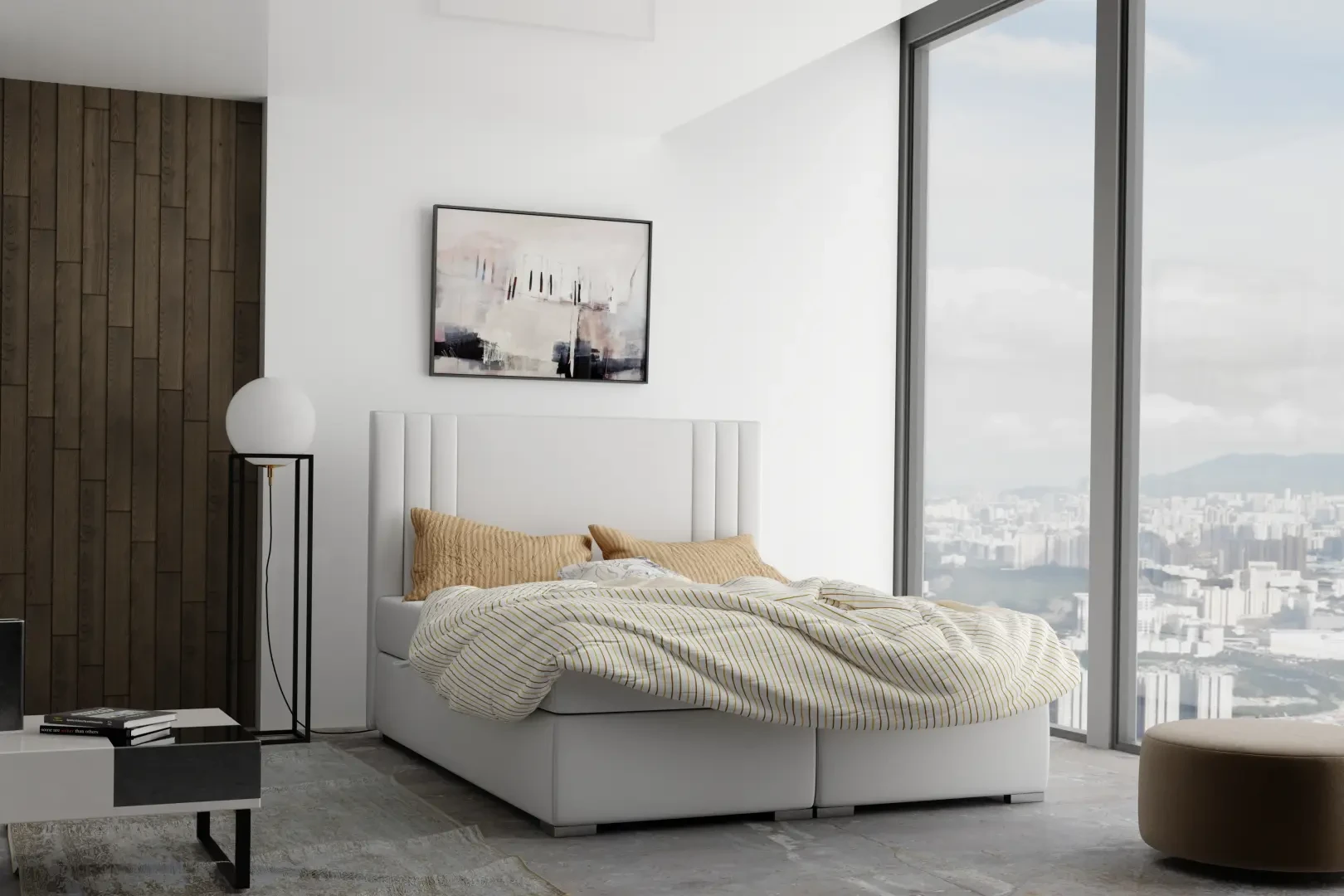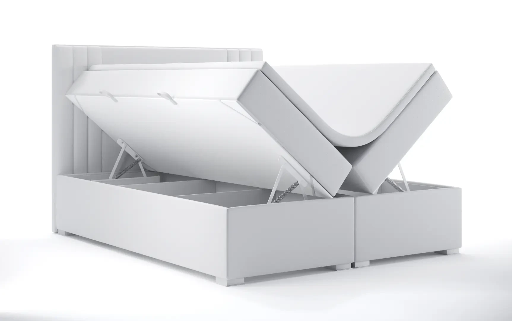 Niezależne materace ze sprężynami typu bonell oraz pianką T-25 jak i wierzchni topper z pianki T-21 zapewniają idealne dopasowanie do kształtu ciała. Dostęp do pojemnych schowków na pościel ułatwiają bezpieczne automaty. Duża wysokość powierzchni spania zmniejsza wysiłek wstawania z łóżka (co jest doskonałą informacja dla osób starszych) oraz sprawia, że w strefie snu znajduje się znacznie mniej roztoczy i zanieczyszczeń, niż w przypadku łóżek niższych. Nie licząc wezgłowia cała powierzchnia łóżka to materac dzięki czemu łóżko zachowuje kompaktowe rozmiary ułatwiając jego wpasowanie nawet w ciaśniejsze sypialnie mieszkań miejskiej dżungli.