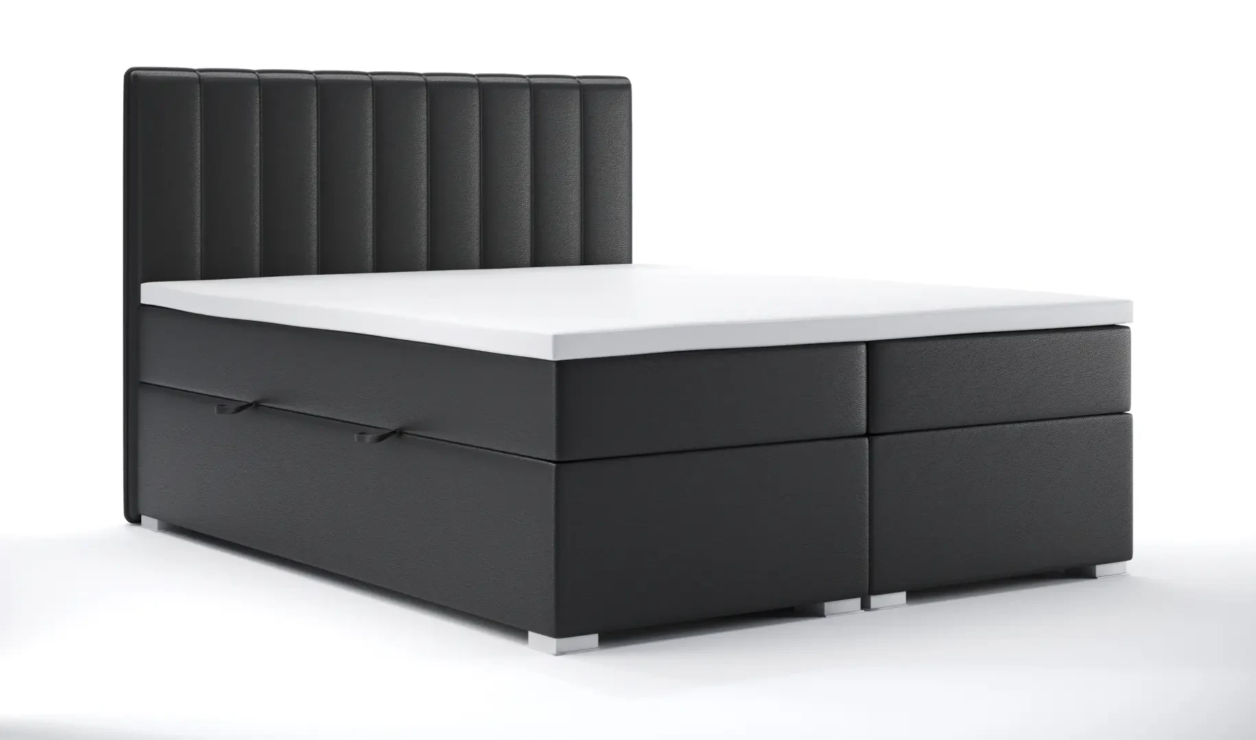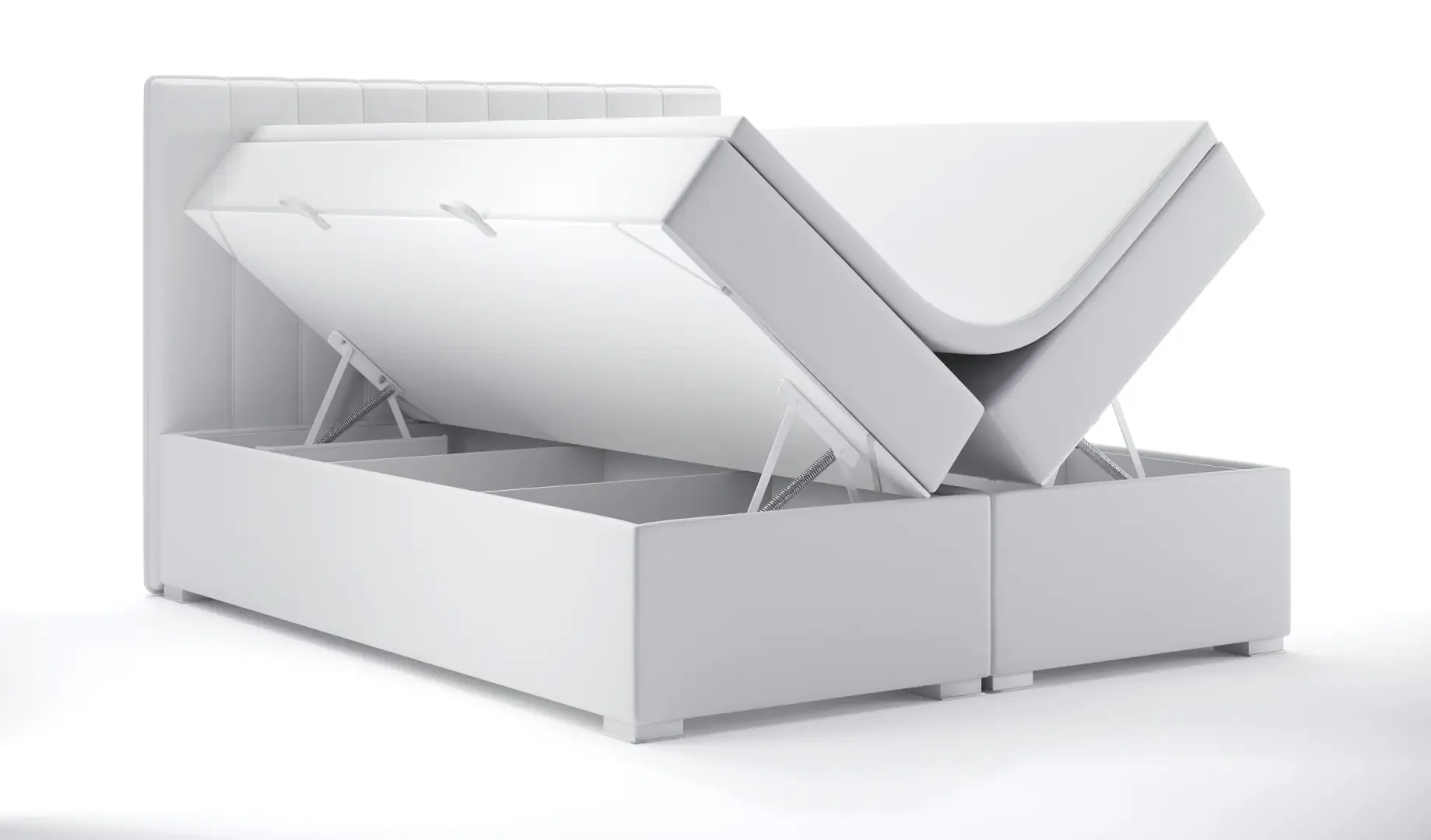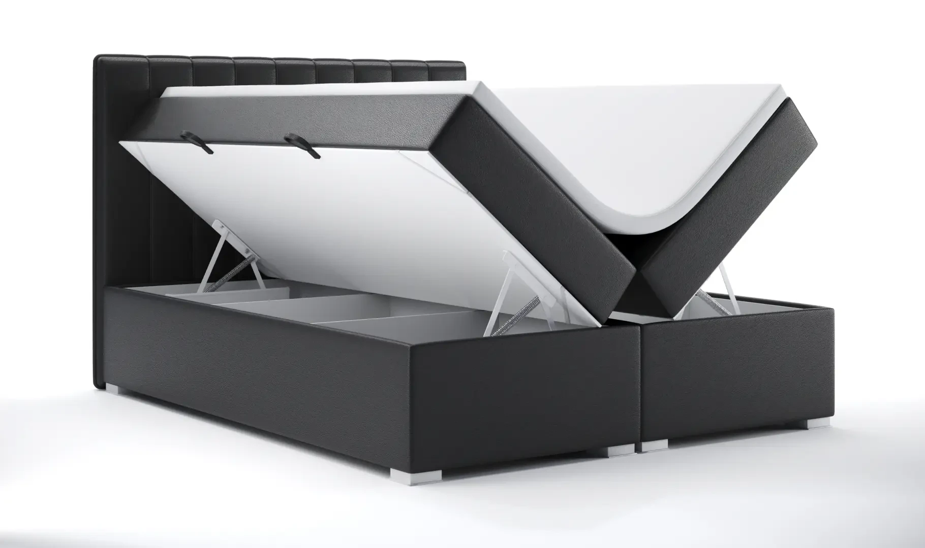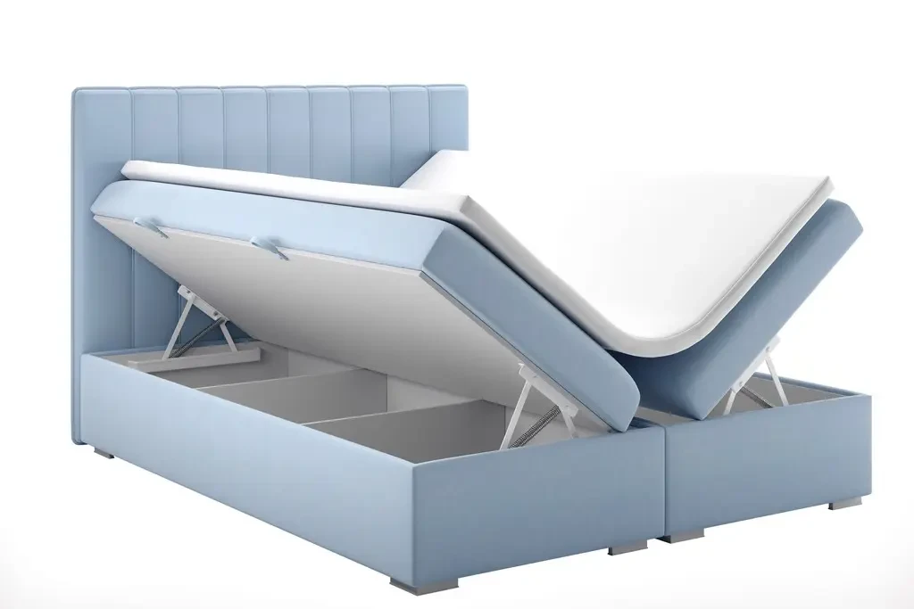 Niezależne materace ze sprężynami typu bonell oraz pianką T-25 jak i wierzchni topper z pianki T-21 zapewniają idealne dopasowanie do kształtu ciała. Dostęp do pojemnych schowków na pościel ułatwiają bezpieczne automaty. Duża wysokość powierzchni spania zmniejsza wysiłek wstawania z łóżka (co jest doskonałą informacja dla osób starszych) oraz sprawia, że w strefie snu znajduje się znacznie mniej roztoczy i zanieczyszczeń, niż w przypadku łóżek niższych. Nie licząc wezgłowia cała powierzchnia łóżka to materac dzięki czemu łóżko zachowuje kompaktowe rozmiary ułatwiając jego wpasowanie nawet w ciaśniejsze sypialnie mieszkań miejskiej dżungli.