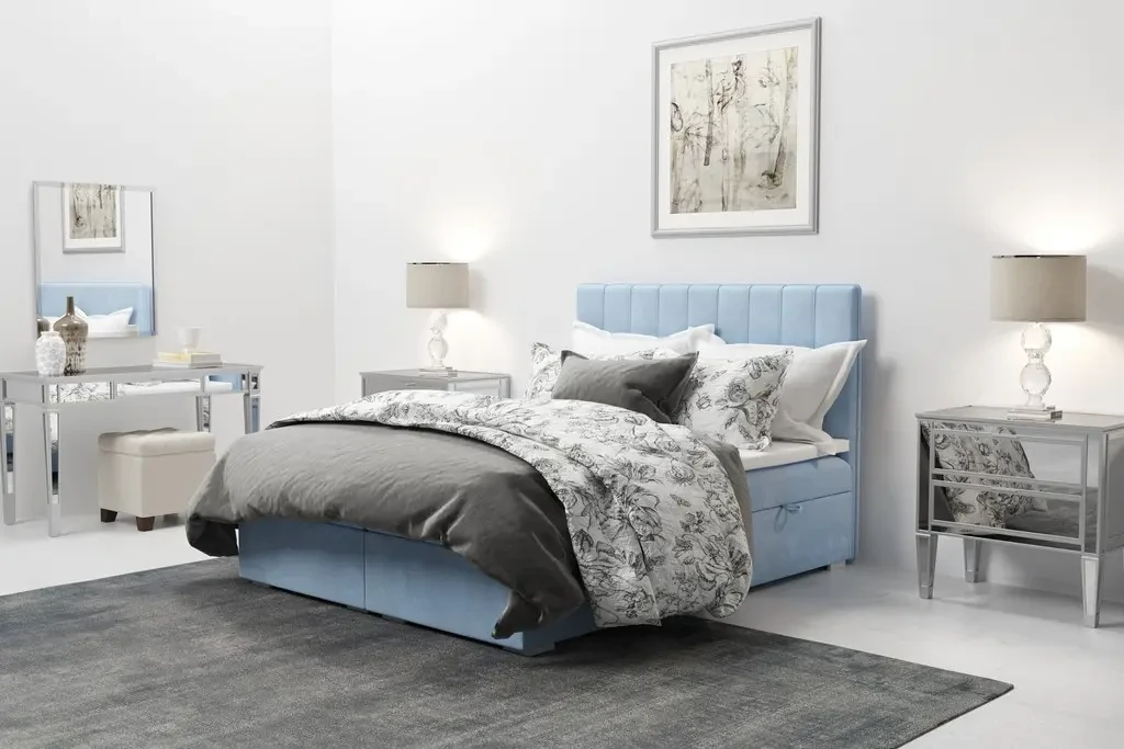 Łóżko kontynentalne Rally z pojemnikami 160x200 dwuosobowe tapicerowane