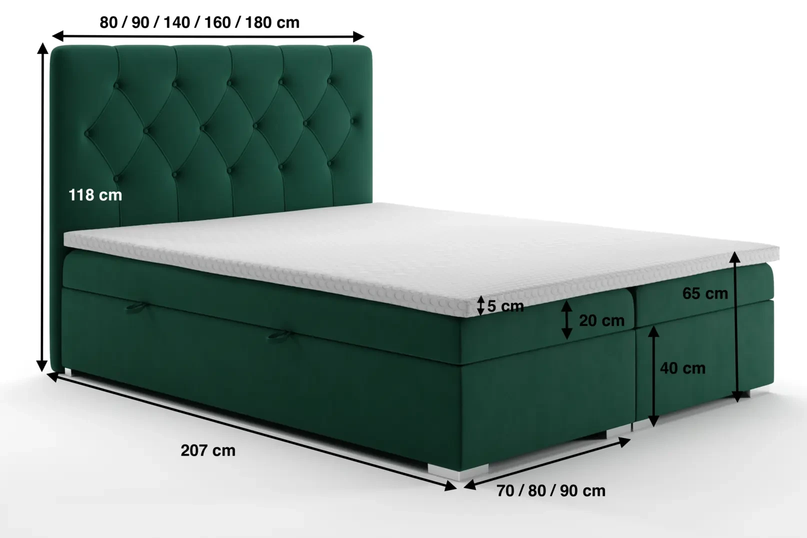 - Głębokość pojemników na pościel: 35 cm