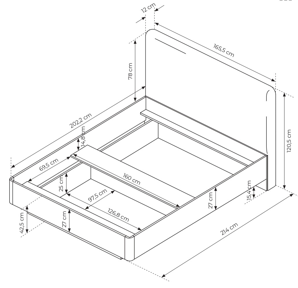 Wymiary łóżka Lante: