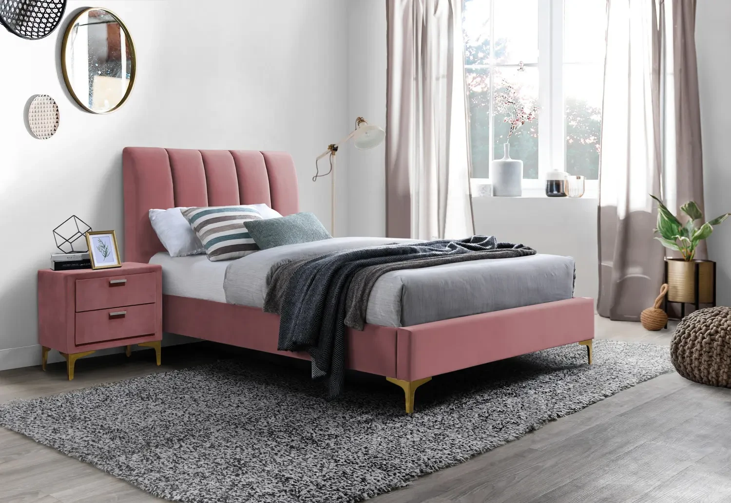 Łóżko tapicerowane Mirage Velvet 90x200 antyczny róż .185