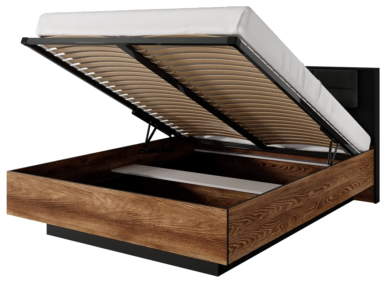 Łóżko z pojemnikiem Milton 160x200 cm kasztan + antracyt