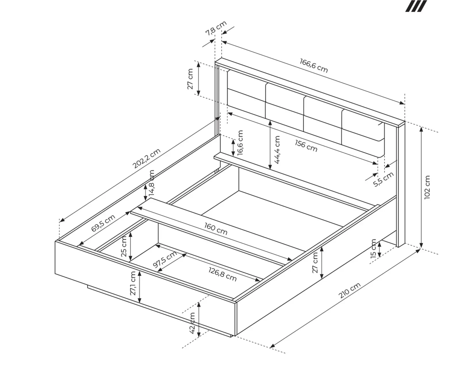 - Powierzchnia spania: 160x200 cm