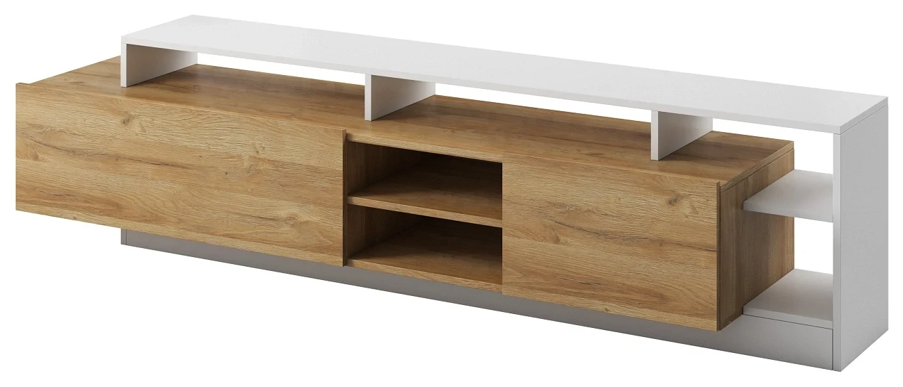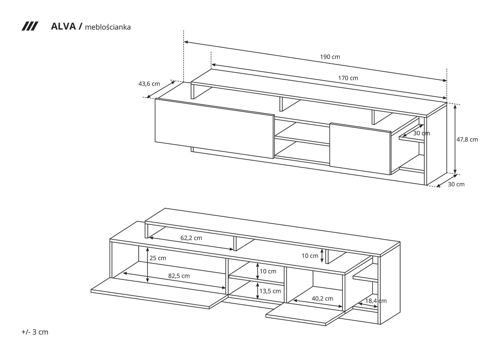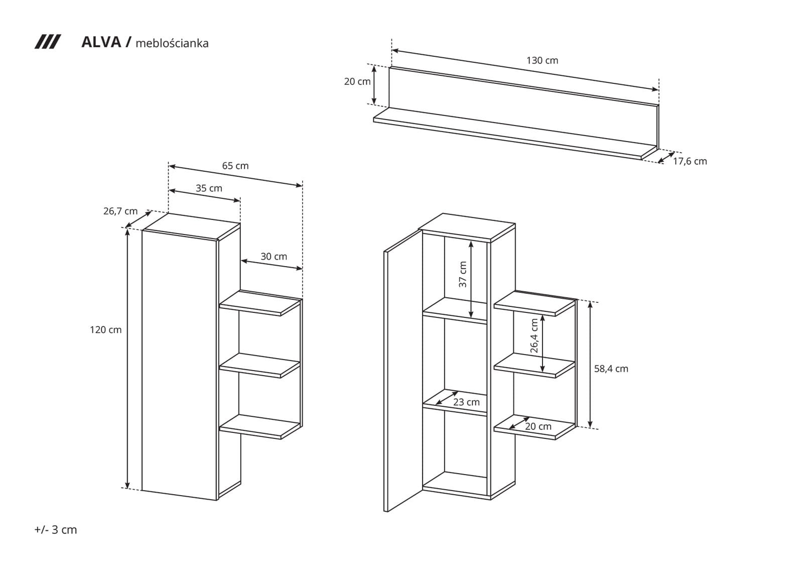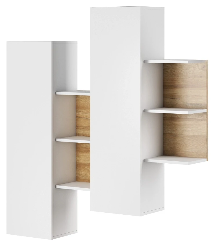 Wprowadź nowoczesność i elegancję do swojego salonu z meblościanką Alva. Ten stylowy zestaw wykonany jest z wysokiej jakości płyty laminowanej, która gwarantuje trwałość i wysoką odporność na uszkodzenia. Meble wykończone są w modnym, matowym odcieniu dębu grandson i bieli, co nadaje im nowoczesny i elegancki wygląd. Powierzchnie mebli są łatwe do czyszczenia, co pozwala zachować ich estetyczny wygląd przez długi czas. Fronty w odcieniach dębu dodają naturalnego ciepła, a białe elementy podkreślają jej nowoczesny charakter. Meblościanka Alva składa się z niezależnych od siebie elementów, co pozwala na dowolne ich rozmieszczenie zgodnie z indywidualnymi potrzebami i preferencjami. Dzięki temu możesz łatwo dostosować układ mebli do swojego wnętrza, tworząc unikalne aranżacje. Dodaj meblościankę Alva do swojego koszyka i ciesz się elegancją oraz funkcjonalnością, które wprowadzi do Twojego domu. Mebel został zaprojektowany i wykonany w Polsce co jest gwarancją jakości - Wspieraj
