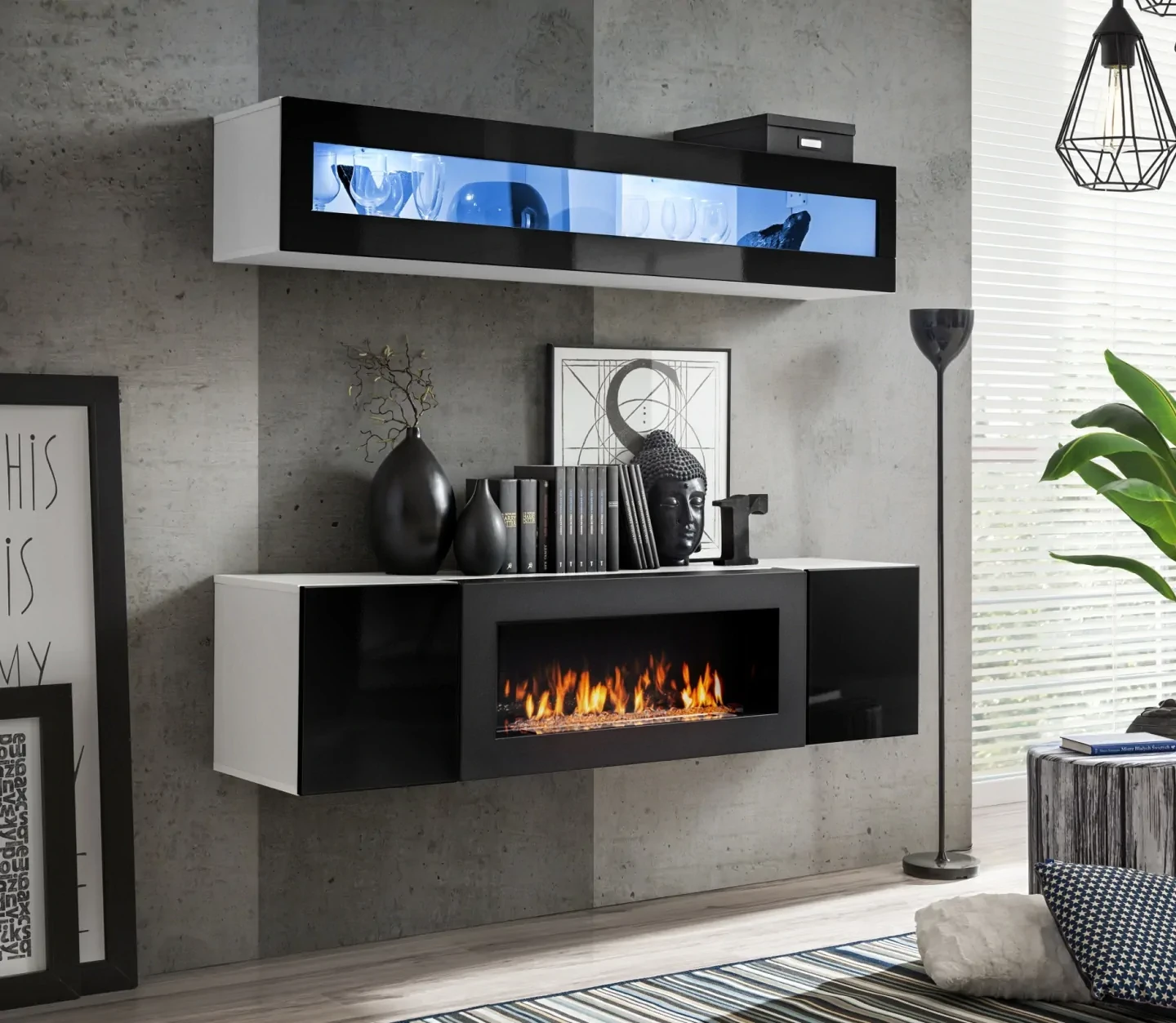 Meblościanka Fly N2 z biokominkiem oświetlenie LED zestaw 2 elementy do salonu
