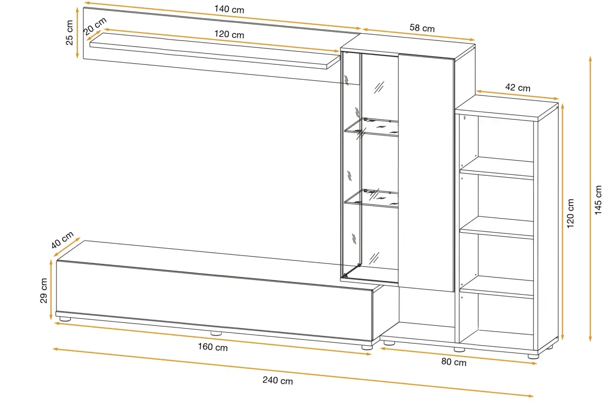 Meblościanka Silk II 240 cm zestaw 4 elementy z LED do salonu