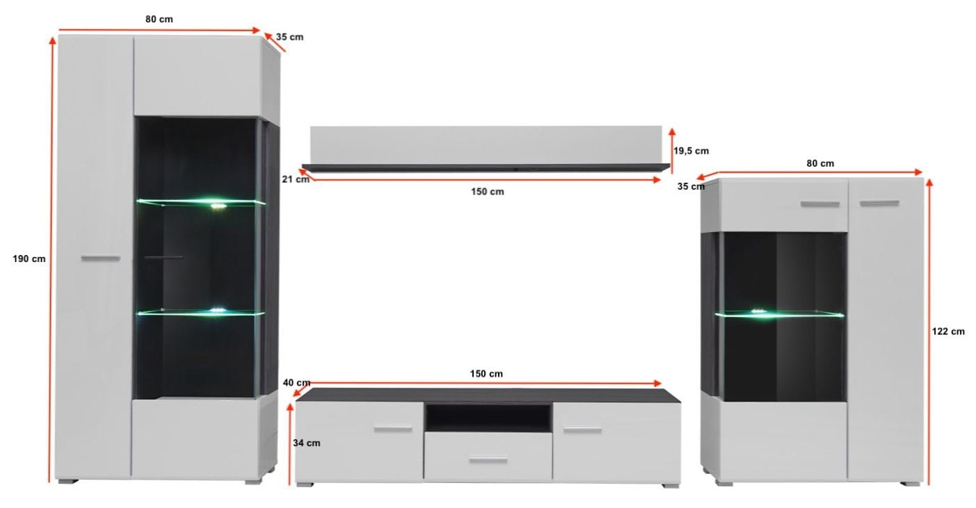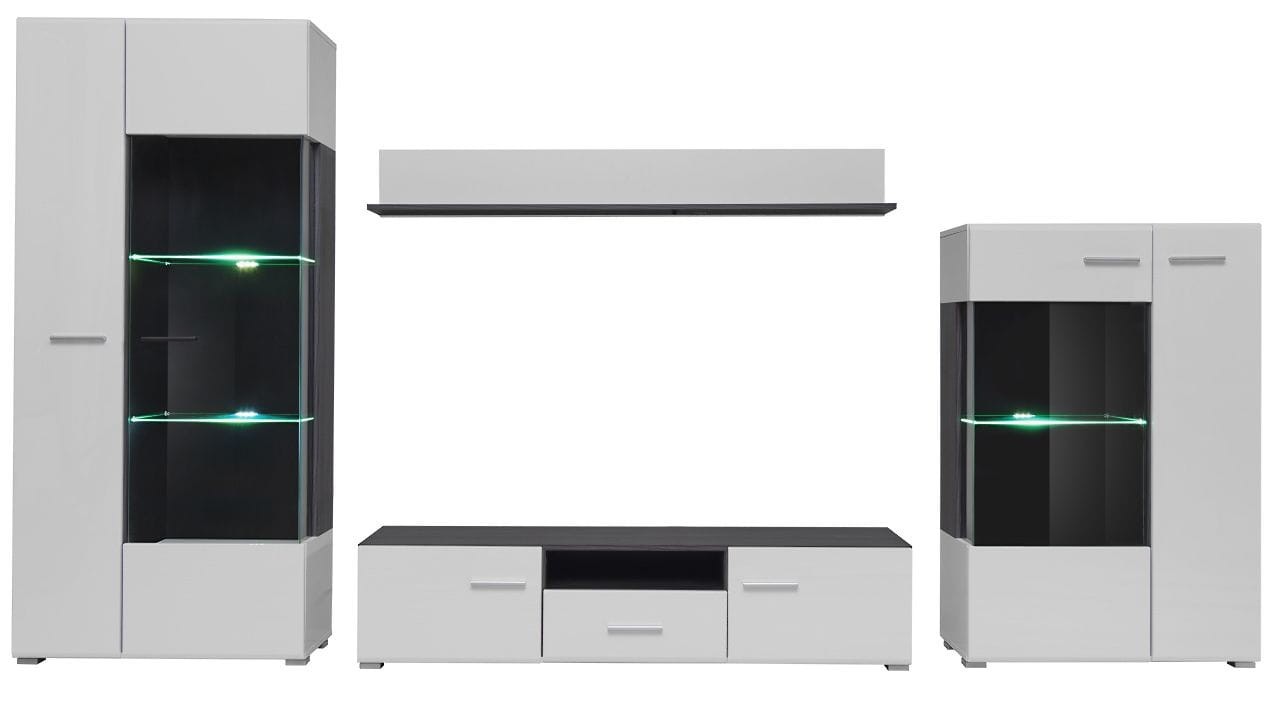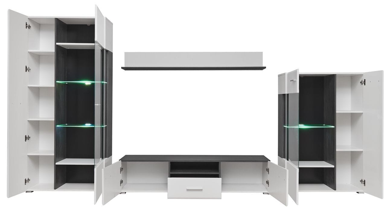 Meblościanka SOLIDO sosna norweska czarna/biały MDF połysk
