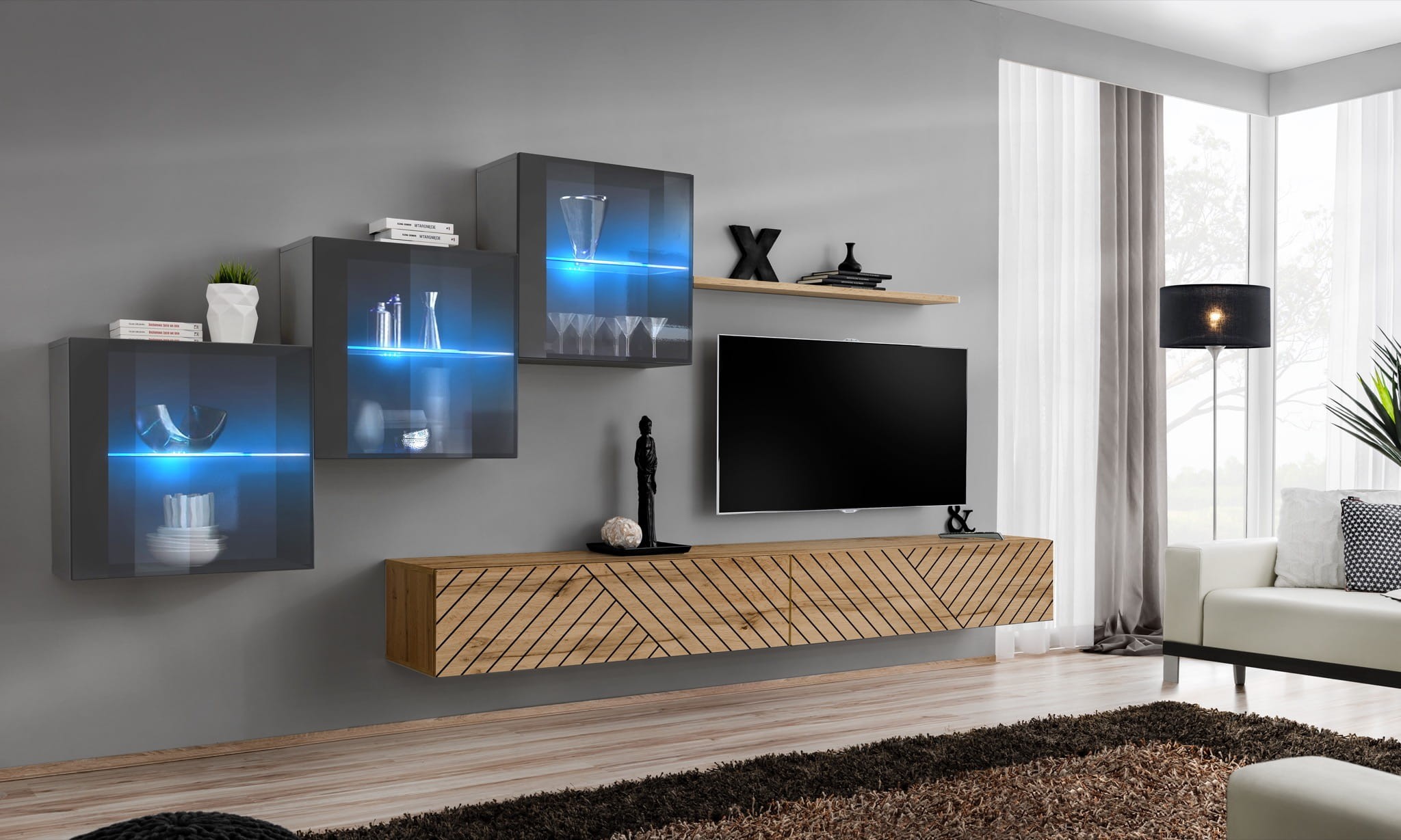 Meblościanka Switch Lamel XX zestaw z oświetleniem LED do salonu