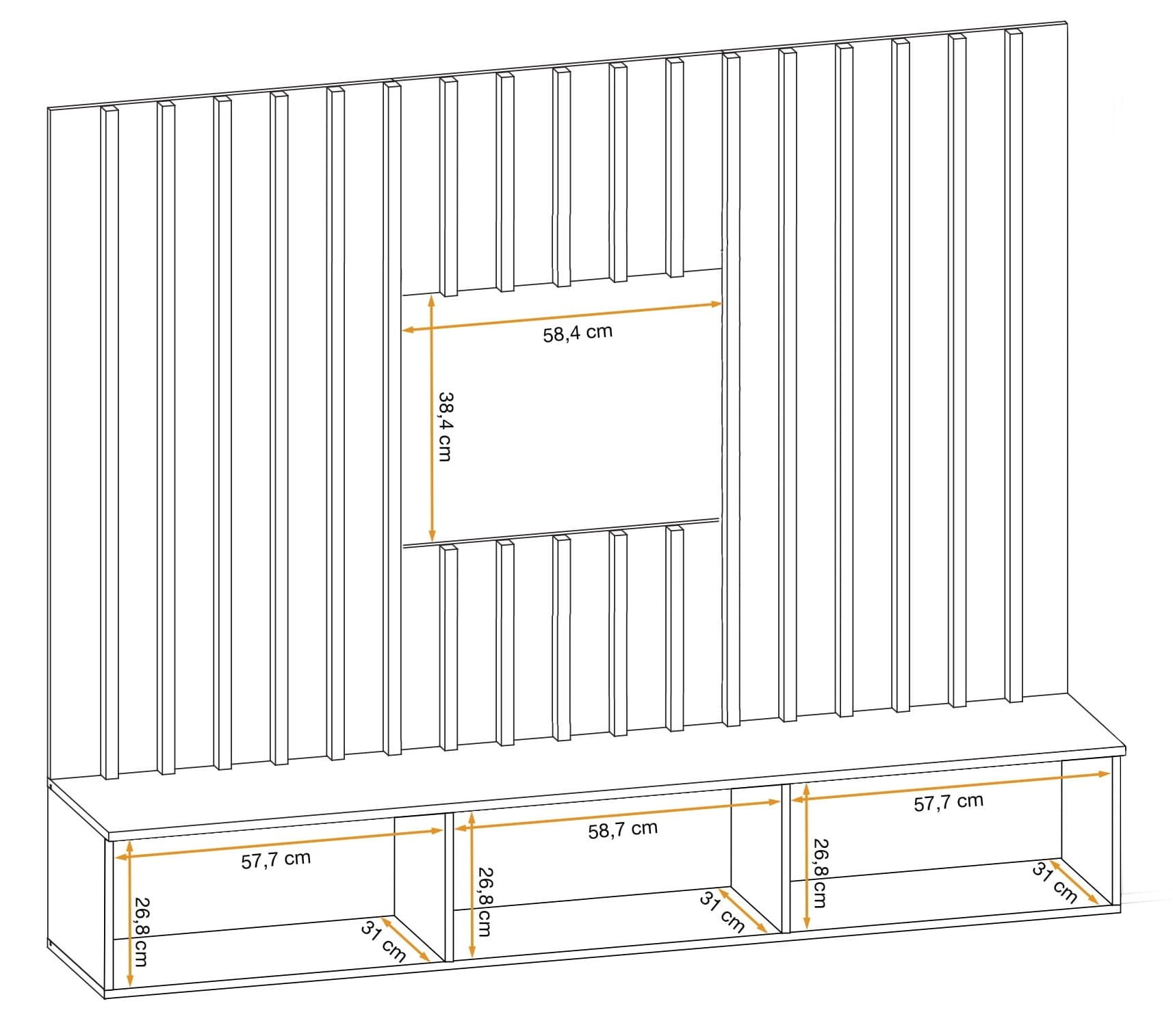 Meblościanka Verti II panel ścienny z lamelami szafka RTV zestaw do salonu