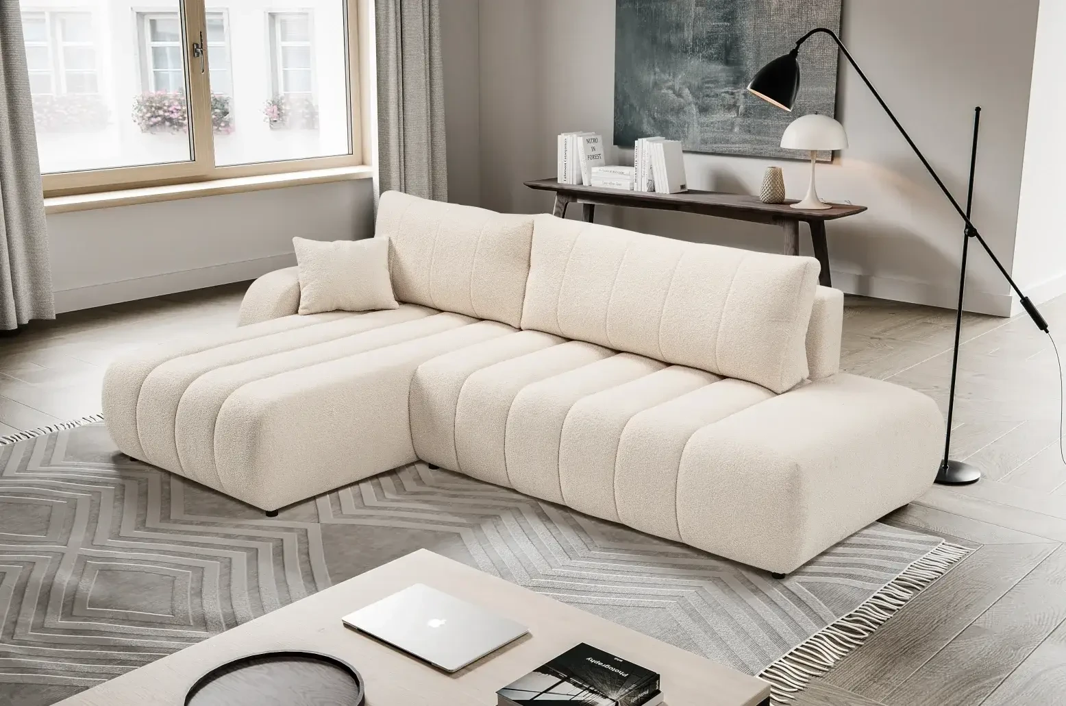 Narożnik BALOO to kwintesencja nowoczesnego designu, połączonego z wyjątkową funkcjonalnością. Dzięki swoim uniwersalnym kształtom i subtelnym liniom, doskonale wpisuje się w każdy rodzaj wnętrza – od minimalistycznych przestrzeni po klasyczne salony. Narożnik zachwyca wygodą, solidnym wykonaniem i wielofunkcyjnością, co czyni go idealnym wyborem dla osób poszukujących stylowego, ale praktycznego mebla. Duża powierzchnia spania oraz pojemnik na pościel pozwalają na maksymalne wykorzystanie przestrzeni, a wysokiej jakości tkaniny dostępne z próbnika zapewniają łatwą personalizację produktu do Twoich potrzeb. Mebel został zaprojektowany i wykonany w Polsce co jest gwarancją jakości - Wspieraj