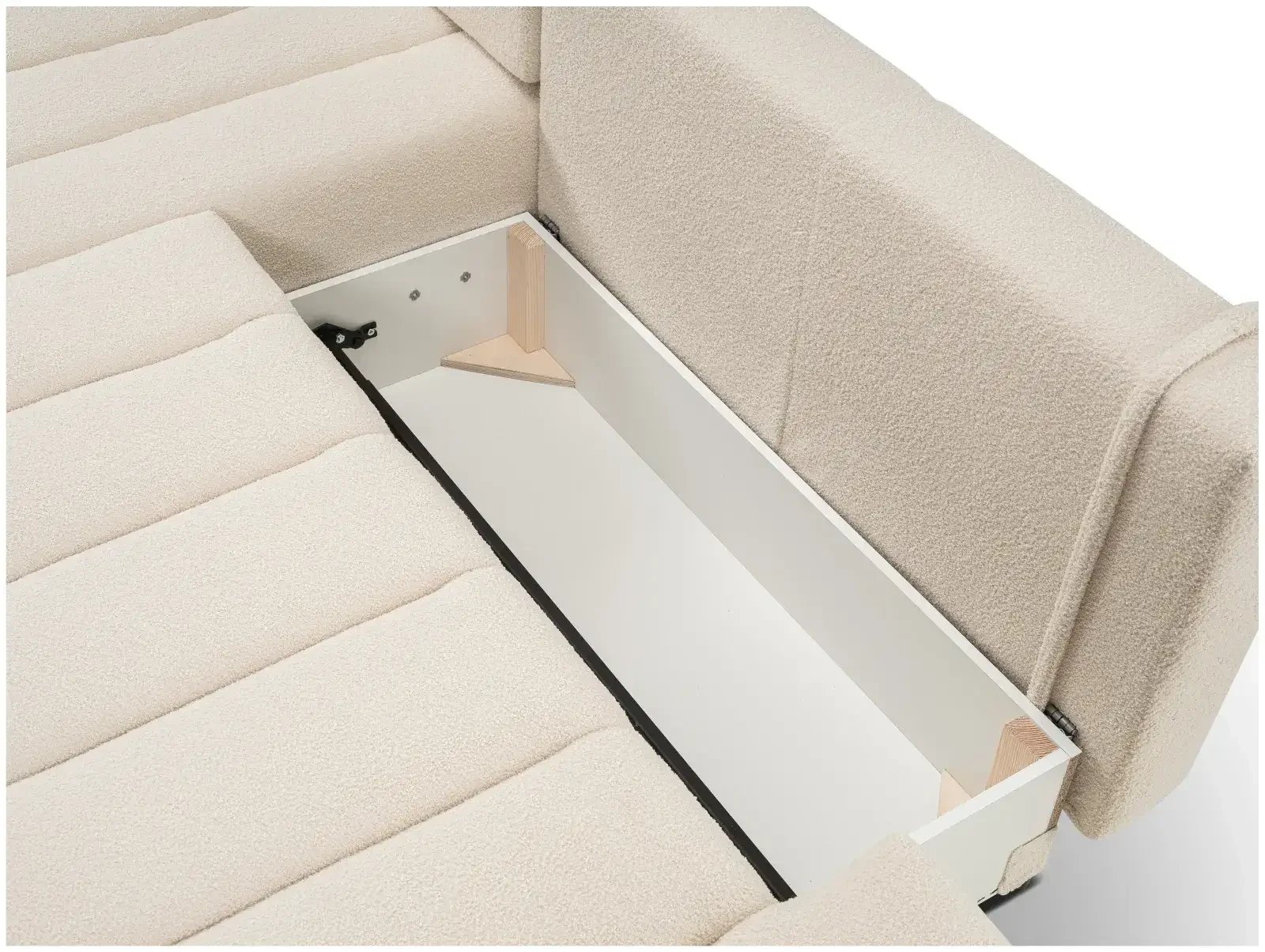 - Pojemnik na pościel – przestronny schowek o wymiarach 113 x 67 x 21,5 cm umożliwia przechowywanie pościeli i innych tekstyliów, utrzymując porządek w pomieszczeniu.