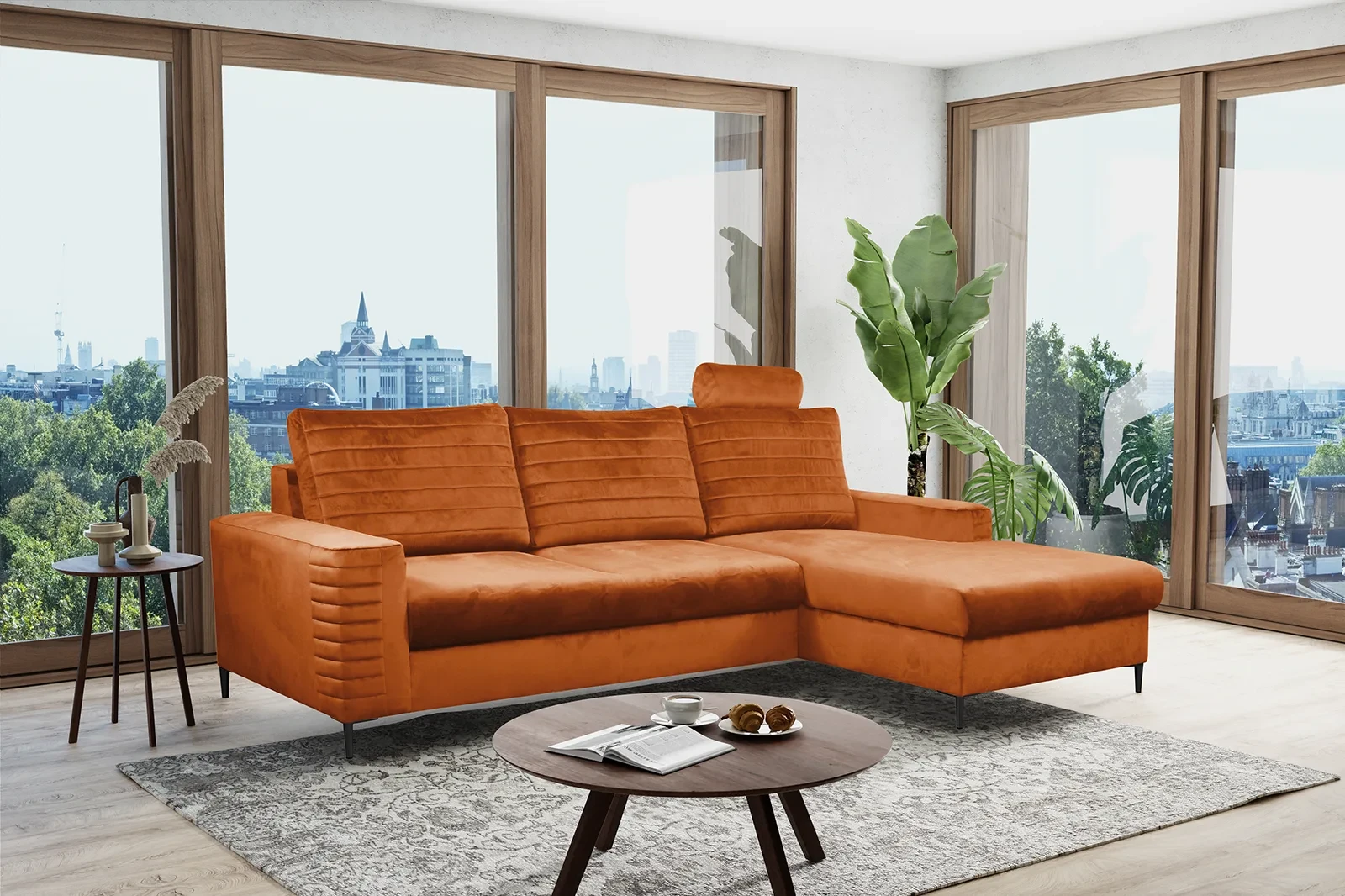 Narożnik COLLIN to elegancki mebel zaprojektowany z myślą o wygodzie i praktycznym wykorzystaniu przestrzeni. Idealnie sprawdzi się w nowoczesnych wnętrzach, oferując komfort zarówno do codziennego relaksu, jak i dodatkową funkcję spania. Dzięki przestronnemu pojemnikowi na pościel, COLLIN pozwala na utrzymanie porządku w salonie, zapewniając miejsce do przechowywania niezbędnych przedmiotów. Wyposażony w wygodny zagłówek oraz automat wspomagający rozkładanie, narożnik ten łączy w sobie styl, funkcjonalność i solidność wykonania. Mebel został zaprojektowany i wykonany w Polsce co jest gwarancją jakości - Wspieraj