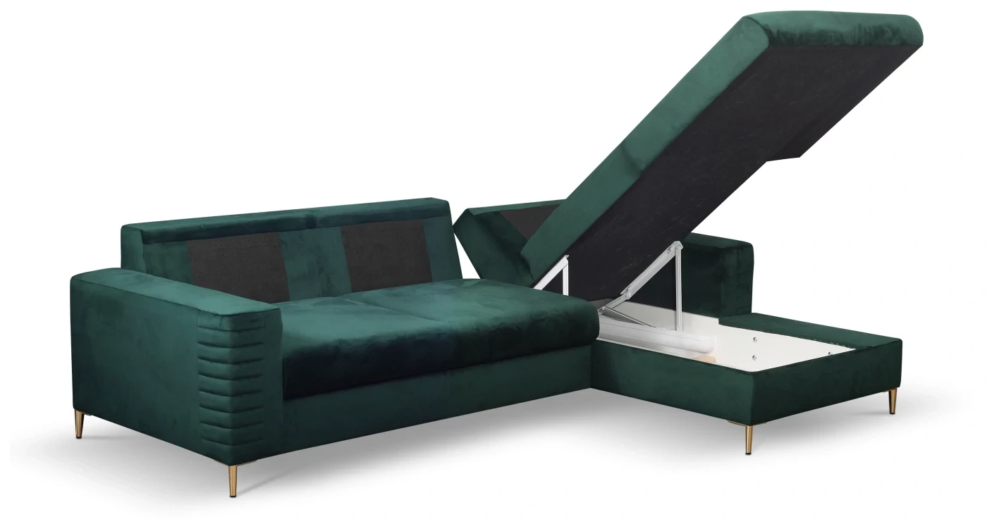 Narożnik rozkładany COLLIN 253 cm z funkcją spania i pojemnikiem na pościel