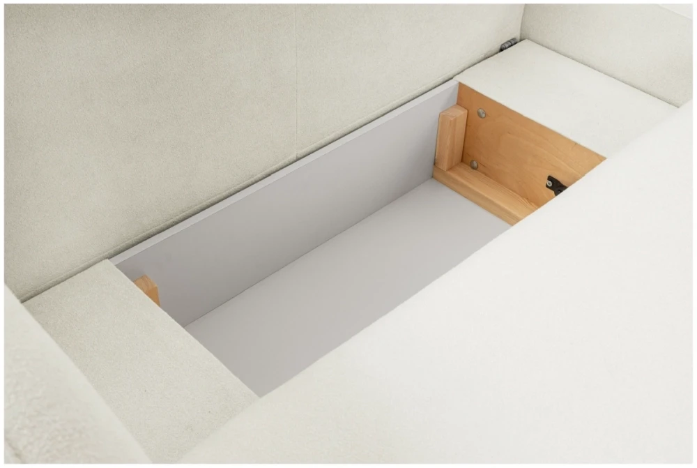 - Przestronny pojemnik na pościel: o wymiarach 65 x 60 x 20 cm pozwala na wygodne przechowywanie pościeli lub innych rzeczy, pomagając utrzymać porządek w salonie.