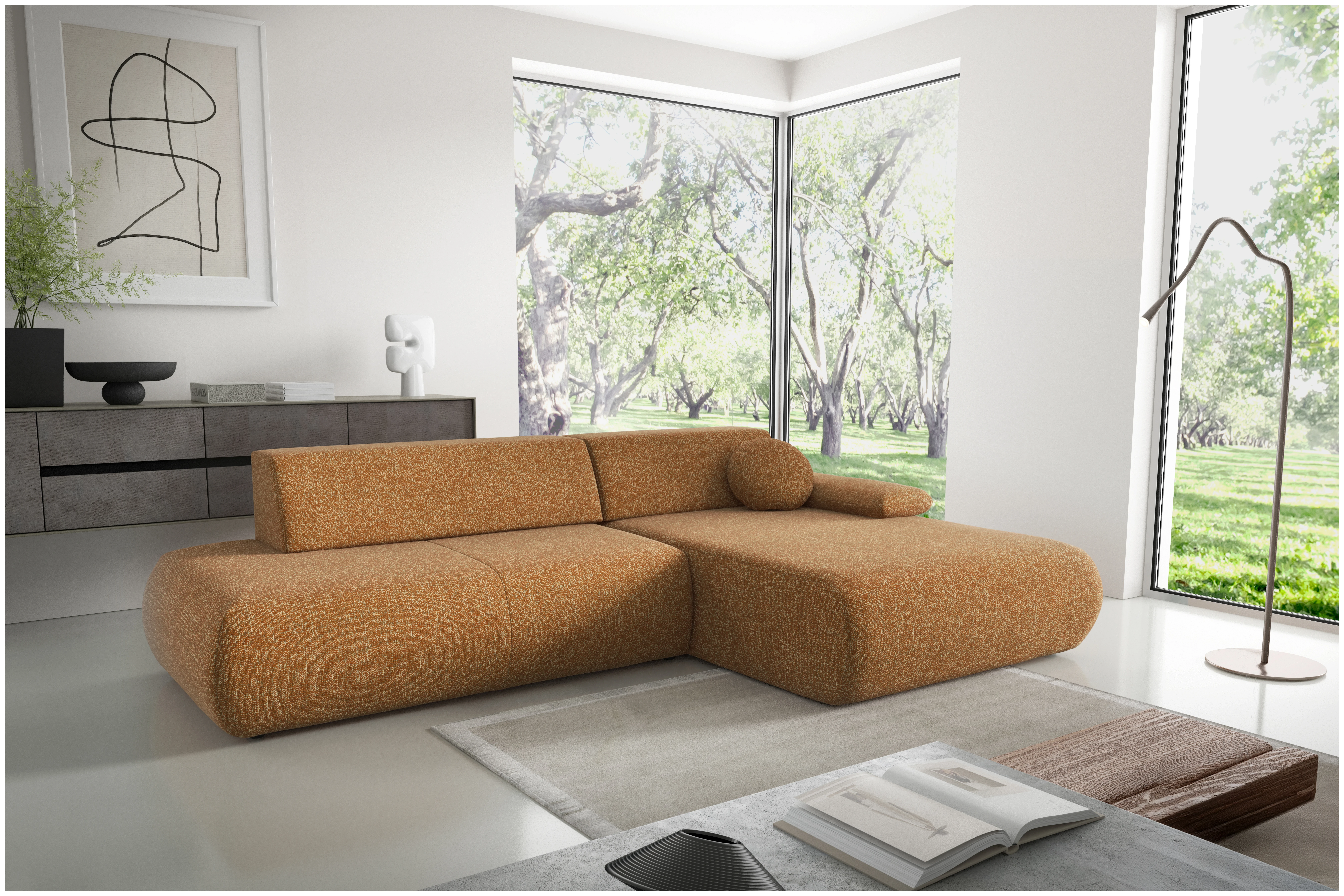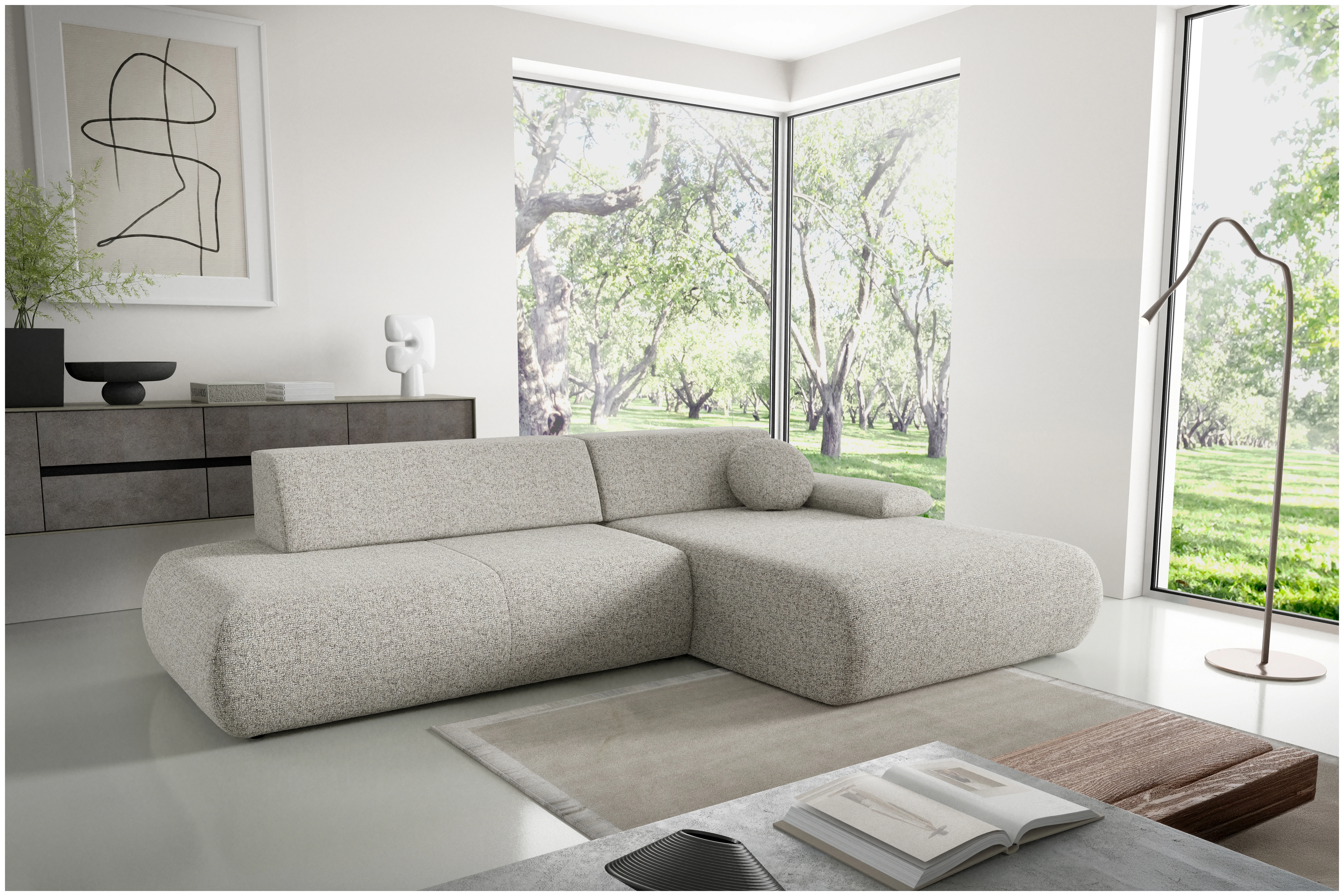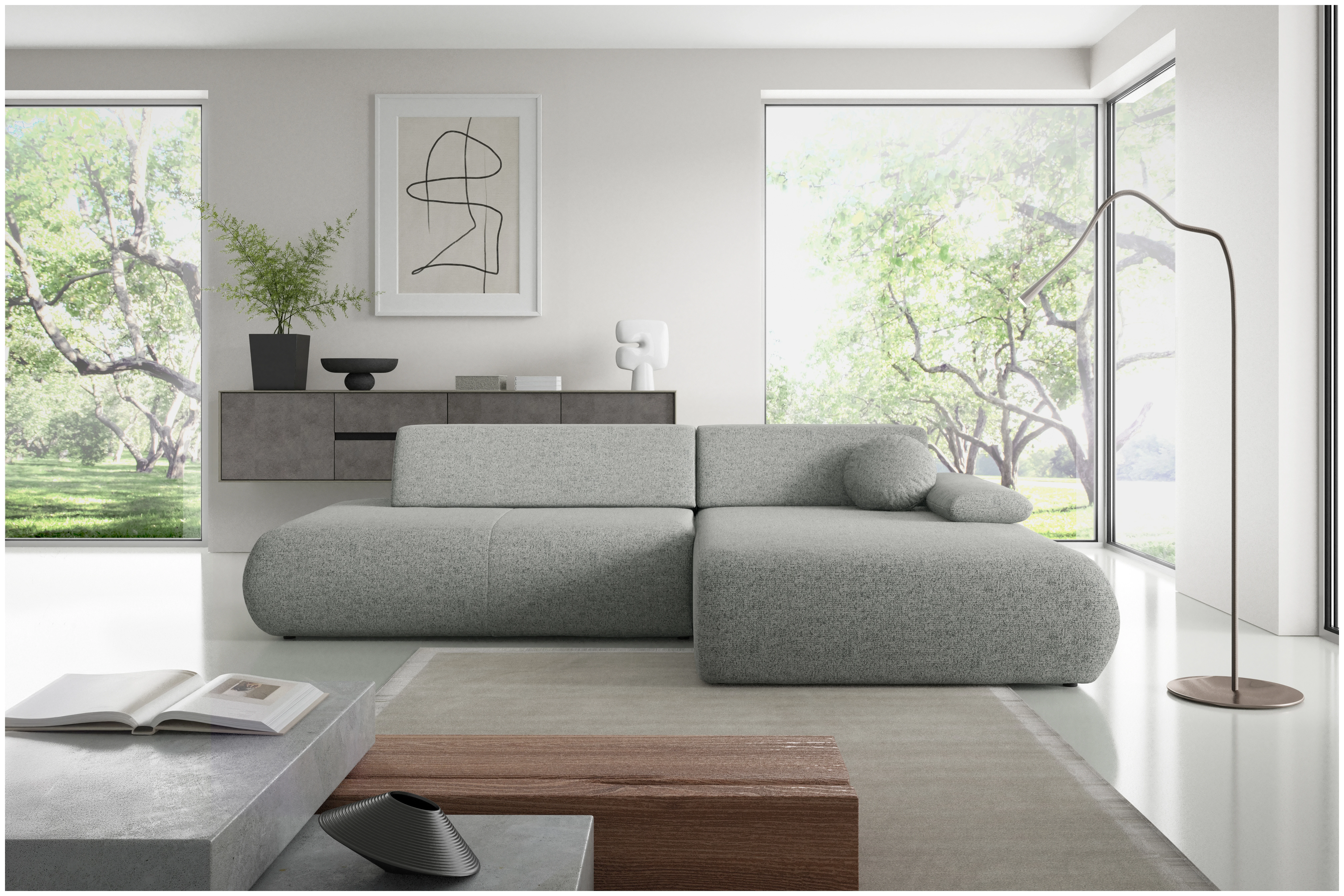 Ten nowoczesny, stylowy narożnik zapewni Ci niezwykły komfort i funkcjonalność na co dzień. Minimalistyczna, geometryczna forma złagodzona zaokrąglonymi krawędziami nadaje mu subtelności i lekkości, dzięki czemu doskonale wpisuje się w każdą aranżację wnętrza. Obszerne siedzisko oraz regulowany podłokietnik zwiększają wygodę użytkowania, a funkcja spania i pojemnik na pościel czynią go wyjątkowo praktycznym. Tapicerowane plecy umożliwiają ustawienie narożnika także w centralnej części salonu. Mebel został zaprojektowany i wykonany w Polsce co jest gwarancją jakości - Wspieraj