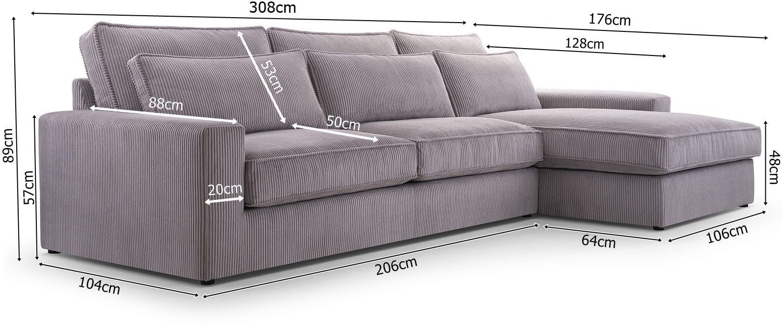 - szerokość narożnika: 308 cm