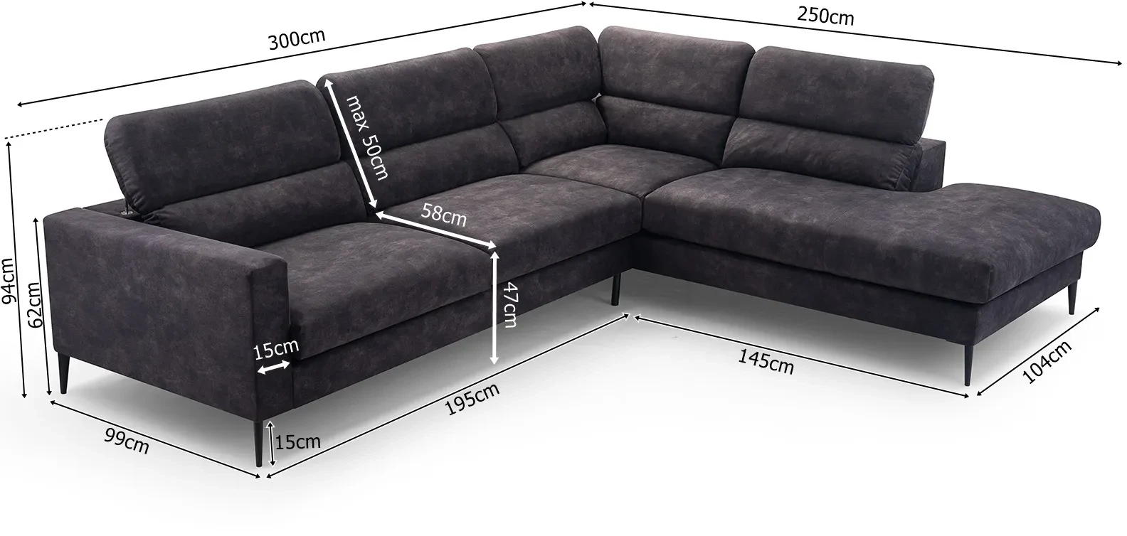 Narożnik można zamówić w wersji lewo i prawostronnej, co pozwala wpasować go do każdego mieszkania. Dzięki równomiernie rozłożonym sprężynom falistym i zagęszczonej piance wysokoelastycznej twoi goście docenią tak stylowość narożnika, jak jego komfort pozwalający tak na zatopienie się w ulubionej książce lub serialu, jak po prostu odcięcie się od zewnętrznego świata i pogrążenie w przyjemnej drzemce.