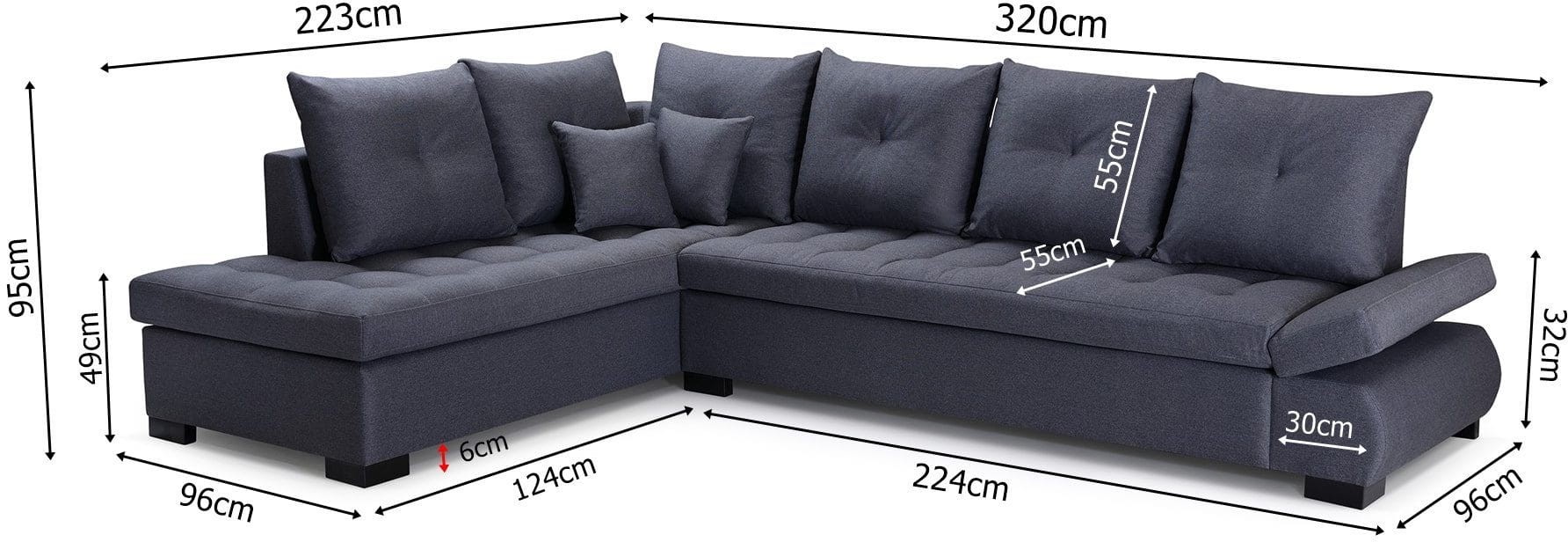 - szerokość narożnika: 320 cm