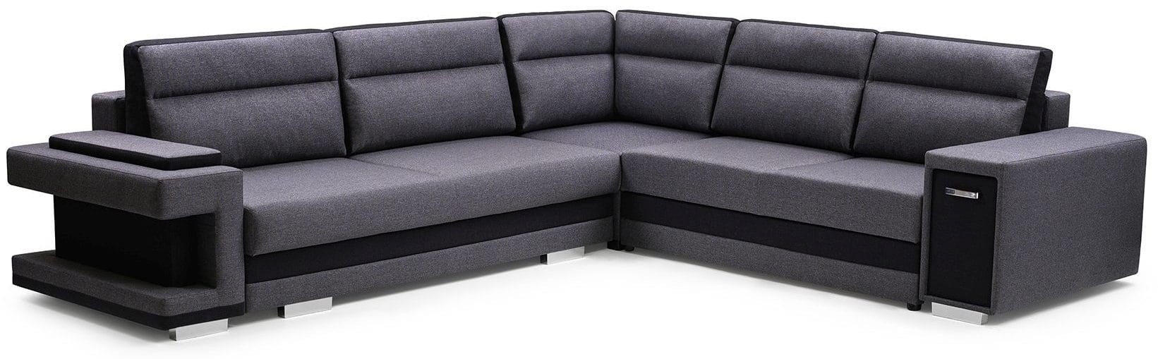 - obszerne dwa pojemniki na pościel + dwa dodatkowe schowki z podłokietnikach