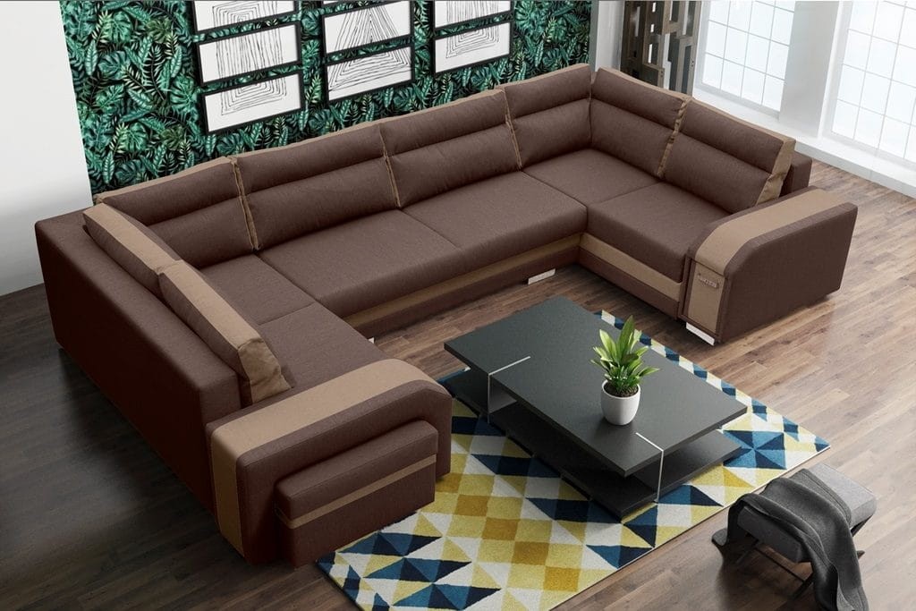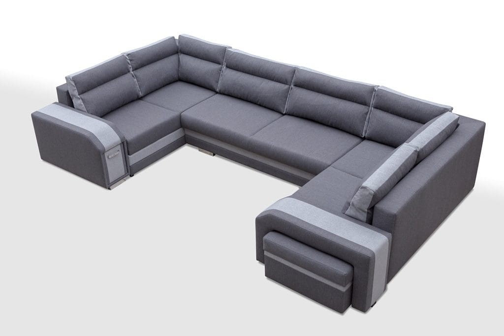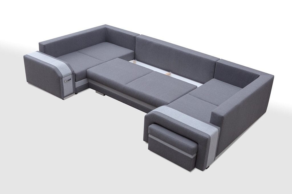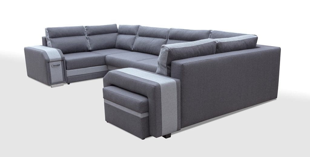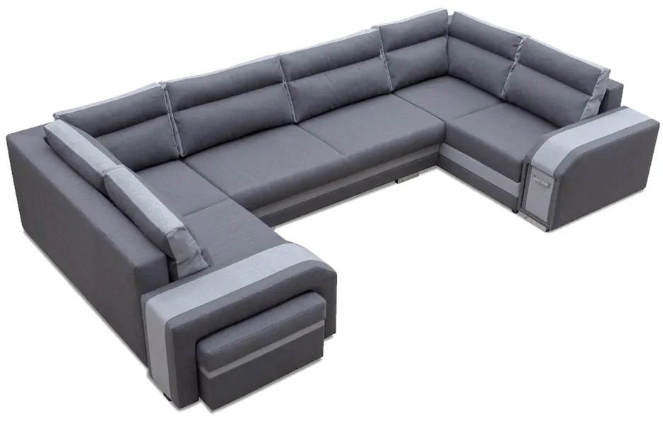 Narożnik z funkcją spania Assan U to klasyczny acz i nowoczesny narożnik rozkładany do salonu. Mebel został zaprojektowany w funkcjonalny i przemyślany sposób oraz wykonany wyłącznie z najlepszych materiałów. Układ w kształcie litery U zapewnia obszerną powierzchnię do wypoczynku i gwarantuje komfortowe użytkowanie nawet dla większej liczby osób, a prosta bryła o standardowym dla tego rodzaju mebli rozmiarze pozwala na idealne dopasowanie narożnika do każdego pomieszczenia. Assan U sprawdzi się w dużych salonach i przestrzeniach, gdzie przyjmujemy gości i spędzamy czas wspólnie z rodziną. Subtelne nóżki w połączeniu z elegancką tkaniną idealnie dopełniają kompozycję tego mebla. Oparcie narożnika zawiera dodatkowo 8 wygodnych poduch, dzięki którym każdy znajdzie na nim komfortową pozycję. Narożnik wyposażony został aż w trzy pojemne schowki na pościel, dzięki czemu przechowywanie jej nie będzie stanowiło więcej problemu. Intuicyjny system rozkładania pozwala przekształcić narożnik w łóżko o powierzchni spania 320 na 150 cm. Niewątpliwie dodatkowym atutem modelu Assan U jest wygodna pufa z pojemnym schowkiem, który może podłużyć do przechowywania np. koców, zabawek dziecka oraz wbudowana skrytka w podłokietniku, która może pełnić funkcję barka lub dodatkowego miejsca do przechowywania. Nowoczesny narożnik Assan U zaprojektowany i wykonany został w Polsce co jest gwarancją jakości - Wspieraj
