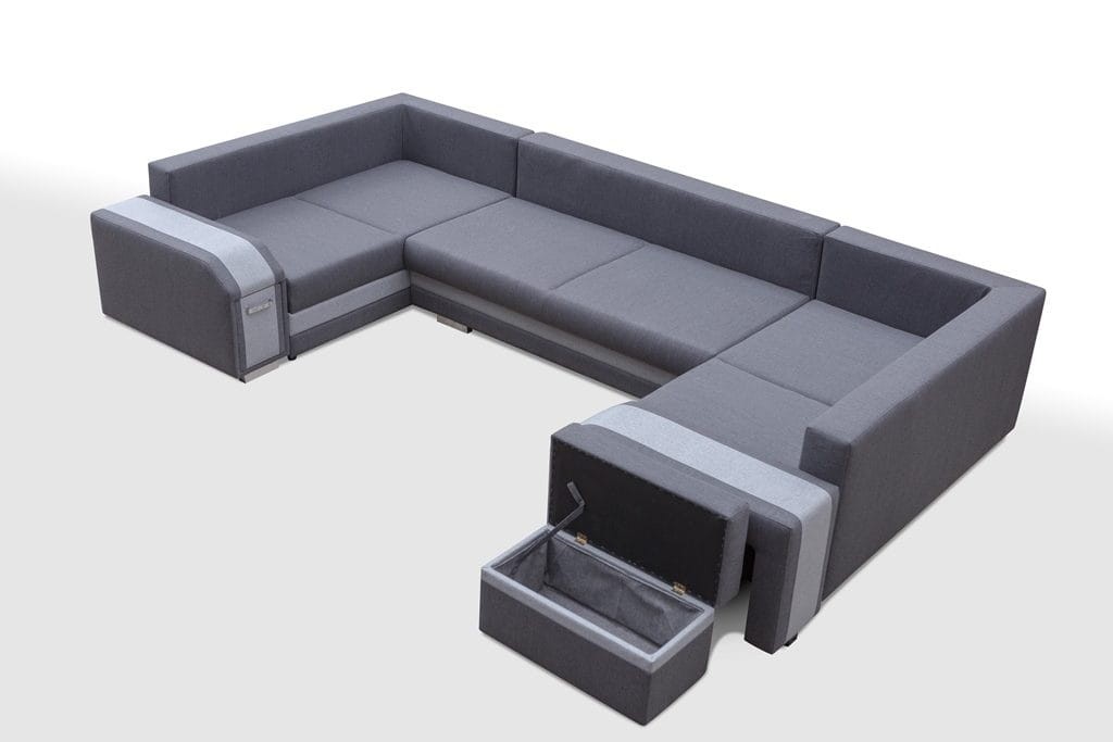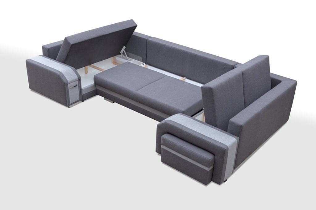 - obszerne trzy pojemniki na pościel + dodatkowy schowek w podłokietniku