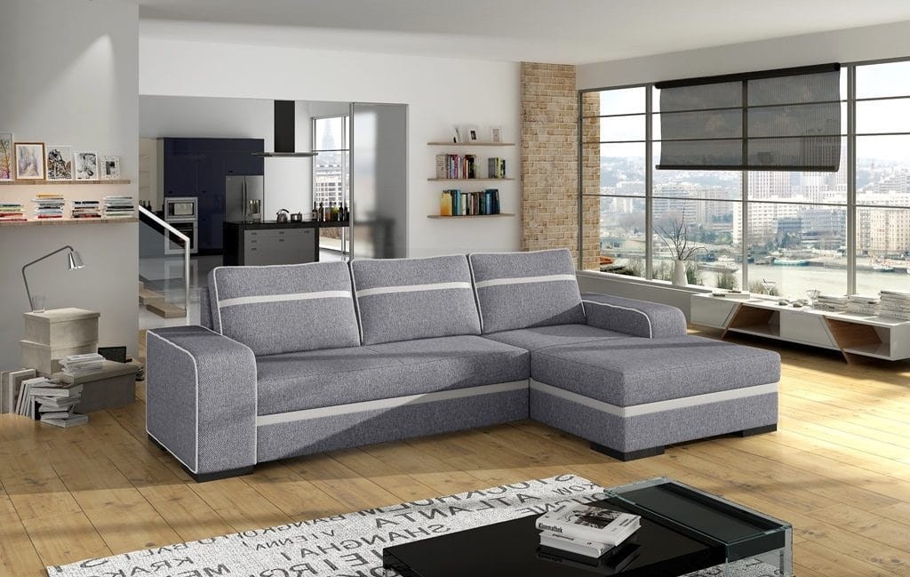 Narożnik z funkcją spania Finn to klasyczny acz i nowoczesny narożnik rozkładany do salonu. Mebel został zaprojektowany w funkcjonalny i przemyślany sposób oraz wykonany wyłącznie z najlepszych materiałów. Prosta bryła o standardowym dla tego rodzaju mebli rozmiarze oraz możliwość łączenia dwóch kolorów pozwala na idealne dopasowanie narożnika do każdego pomieszczenia. Finn sprawdzi się zarówno w dużych salonach, jak i w niewielkich kawalerkach. Subtelne drewniane nóżki w połączeniu z elegancką tkaniną idealnie dopełniają kompozycję tego mebla. Oparcie narożnika zawiera dodatkowo 3 wygodne poduszki, dzięki którym każdy znajdzie na nim komfortową pozycję. Narożnik wyposażony został w pojemny schowek na pościel w otomanie, dzięki czemu przechowywanie jej nie będzie stanowiło więcej problemu. Intuicyjny system rozkładania z systemem 'delfin' pozwala przekształcić narożnik w łóżko o powierzchni spania 220 na 140 cm. Nowoczesny narożnik Finn zaprojektowany i wykonany został w Polsce co jest gwarancją jakości - Wspieraj
