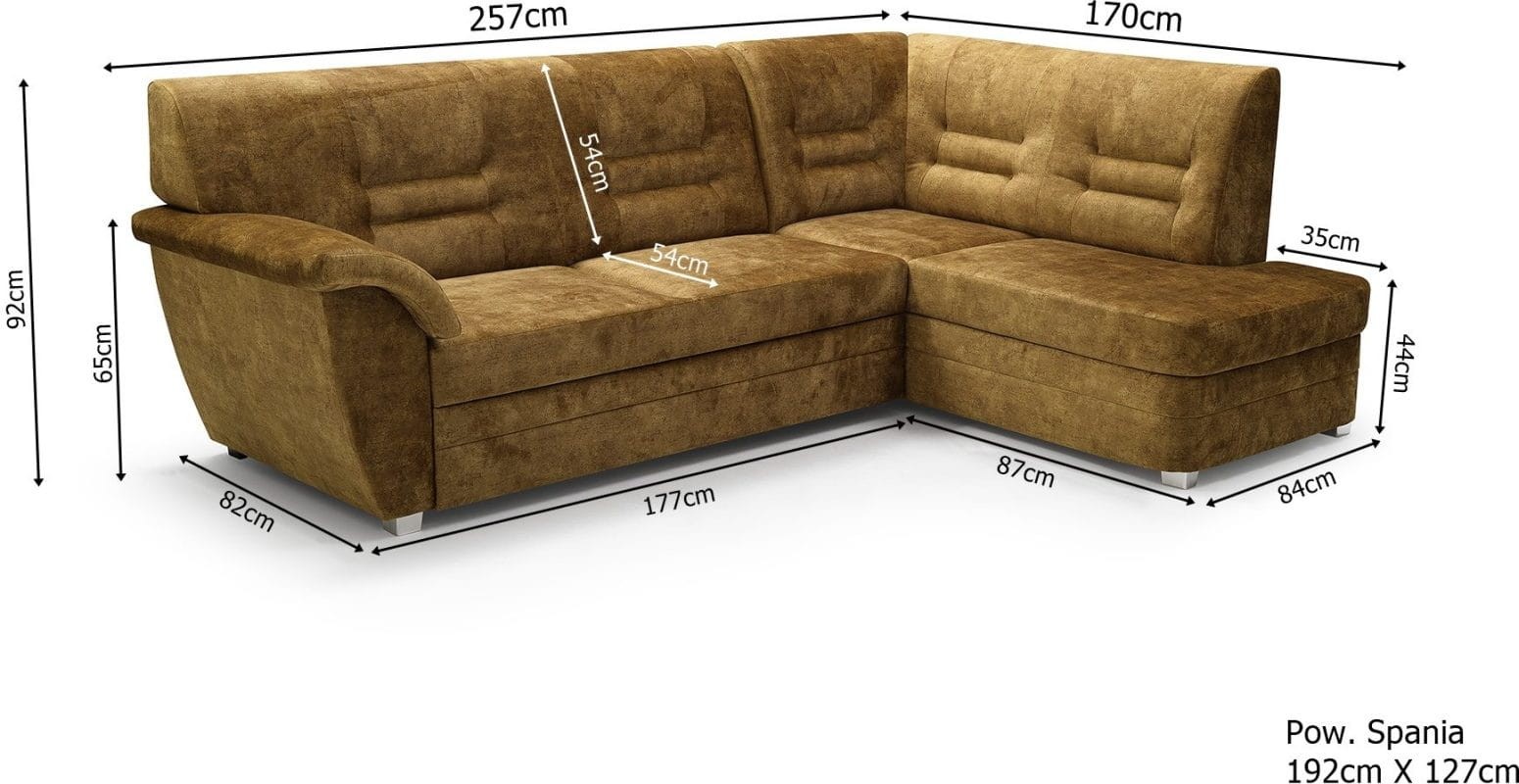 - funkcja rozkładania narożnika daje powierzchnię spania 127x192 cm