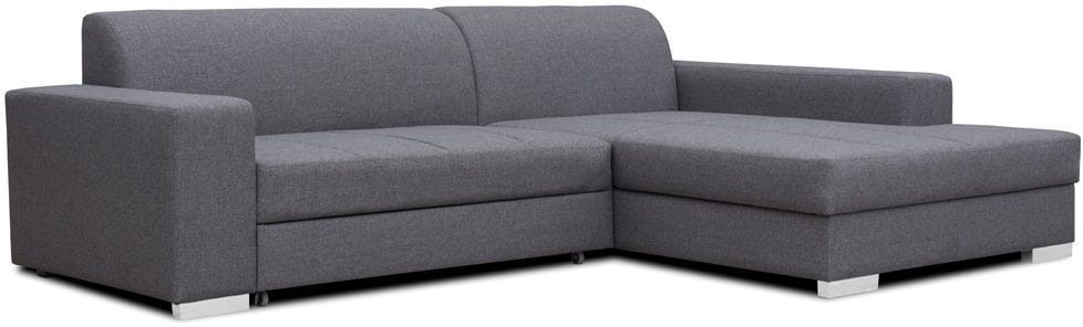 Narożnik z funkcją spania Mistral to klasyczny acz i nowoczesny narożnik rozkładany do salonu. Mebel został zaprojektowany w funkcjonalny i przemyślany sposób oraz wykonany wyłącznie z najlepszych materiałów. Prosta bryła o standardowym dla tego rodzaju mebli rozmiarze pozwala na idealne dopasowanie narożnika do każdego pomieszczenia. Subtelne, srebrne nóżki w połączeniu z elegancką tkaniną idealnie dopełniają kompozycję tego mebla. Wygodne, zaokrąglone oparcie zagwarantuje, że każdy znajdzie na nim komfortową pozycję. Narożnik wyposażony został w pojemny schowek na pościel w otomanie, dzięki czemu przechowywanie jej nie będzie stanowiło więcej problemu. Intuicyjny system rozkładania z systemem 'delfin' pozwala przekształcić narożnik w łóżko o powierzchni spania 212 na 130 cm. Nowoczesny narożnik Mistral zaprojektowany i wykonany został w Polsce co jest gwarancją jakości - Wspieraj