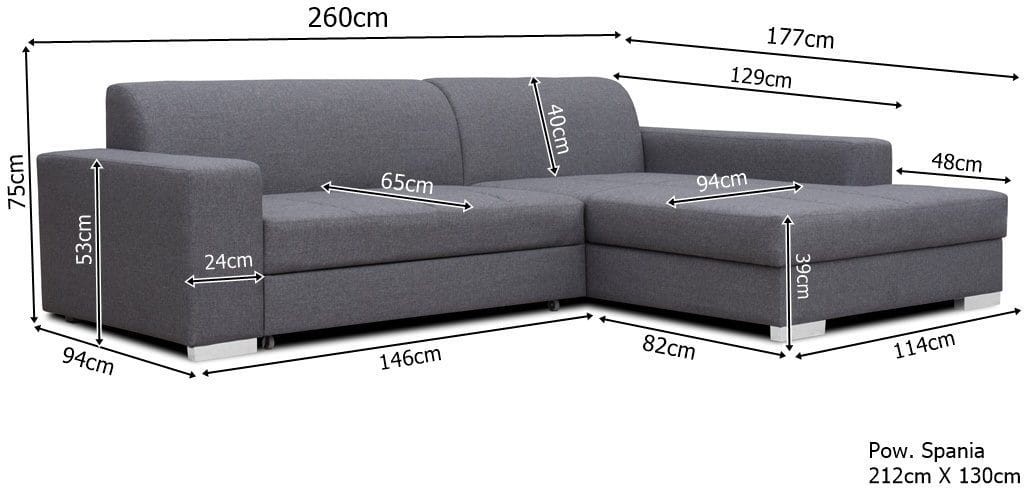 - funkcja rozkładania narożnika daje powierzchnię spania 130x212 cm