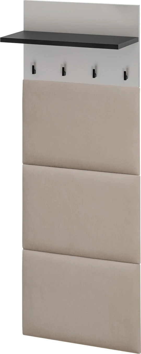 Panel tapicerowany Hugo to eleganckie i funkcjonalne rozwiązanie do przedpokoju lub garderoby. Jego nowoczesny wygląd w kolorach cashmere i czerni doskonale współgra z innymi elementami kolekcji Hugo. Miękki, tapicerowany panel zwiększa komfort użytkowania, a praktyczna półka i cztery wieszaki ułatwiają organizację odzieży i akcesoriów. Solidne wykonanie z trwałych materiałów zapewnia długą żywotność i atrakcyjny wygląd na lata.