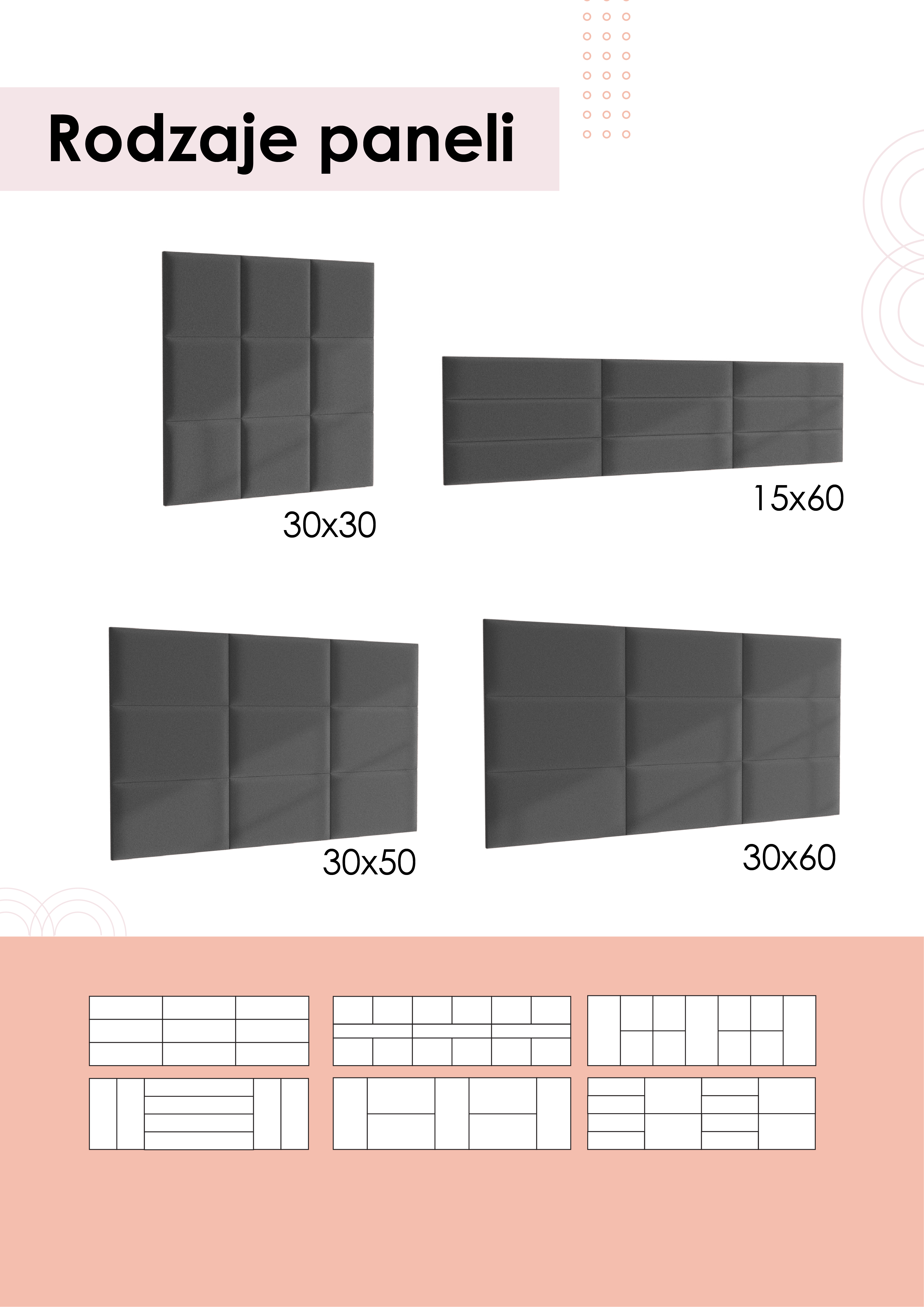 Dzięki dostępności różnych wymiarów (sprawdź inne wymiary paneli) możesz zastosować różne aranżacje i układ paneli. Chcesz ozdobić ścianę w przedpokoju, wyciszyć salon lub biuro albo stworzyć urokliwy zagłówek za łóżkiem w sypialni - zainteresuj się tapicerowanymi panelami ściennymi.