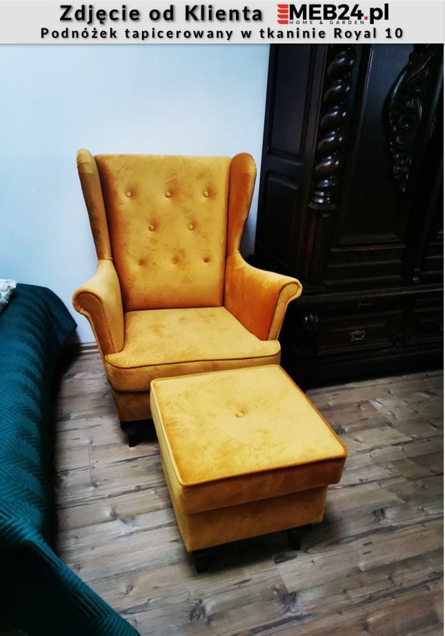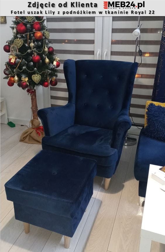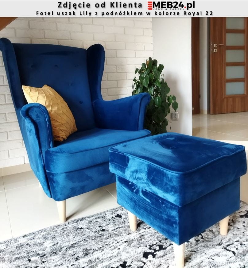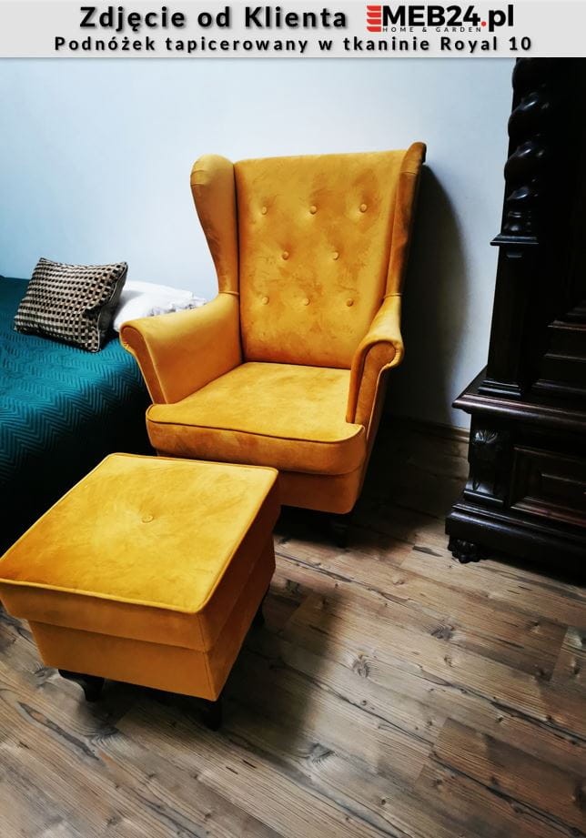 Tkanina i kolor podnóżka na pierwszym zdjęciu to Royal 10 w mocnym oświetleniu.