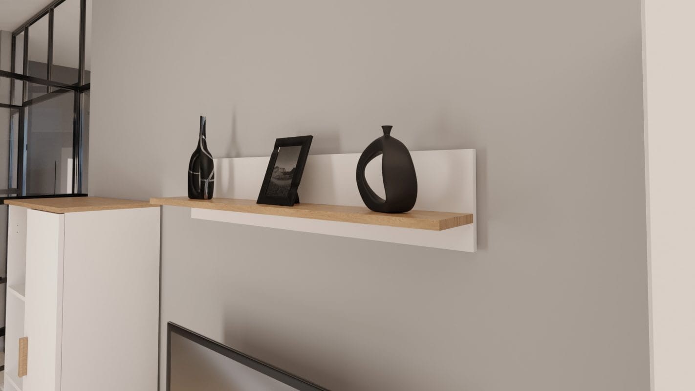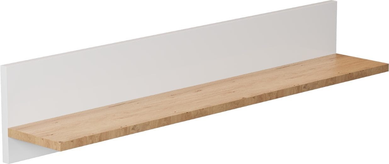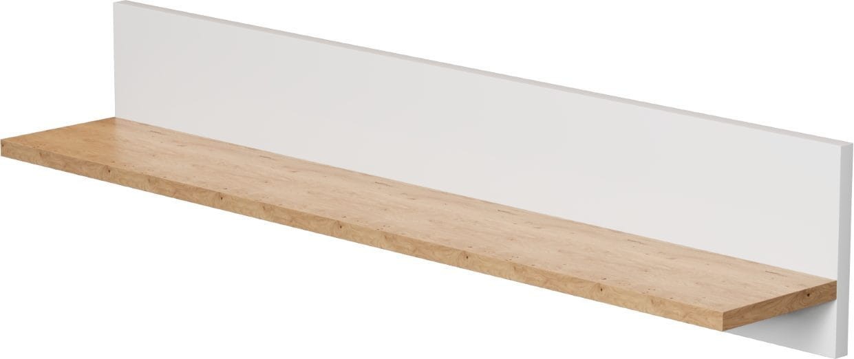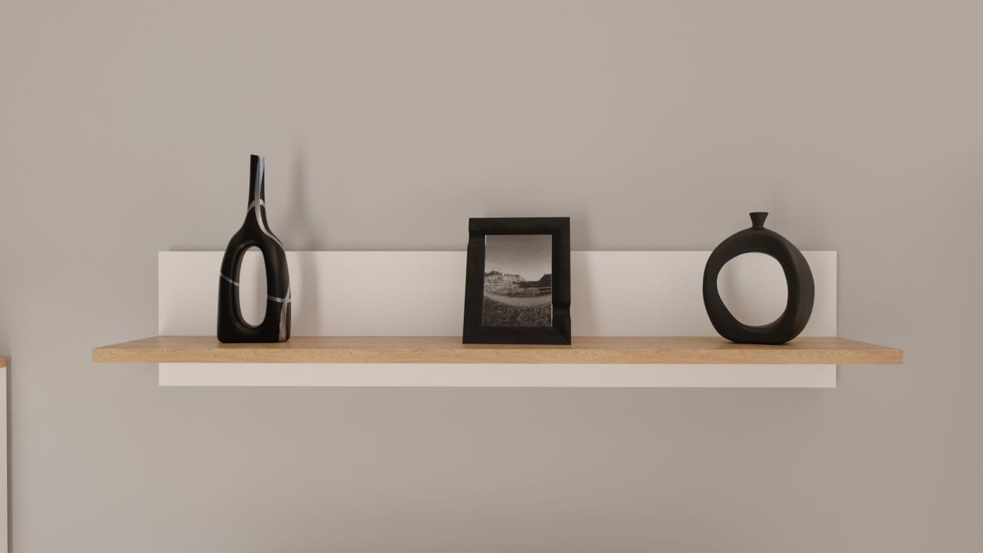 Półka Denver to nowoczesna propozycja praktycznego mebla do pokoju dziennego, młodzieżowego, salonu lub jadalni. Półka wykonana została z wysokiej jakości matowej płyty laminowanej o grubości 18 mm, która dodatkowo zabezpieczona została obrzeżem PCV. Sprawia to, iż mebel odporny jest na uszkodzenia mechaniczne i wilgoć, a jego zakup będzie inwestycją na długie lata. Sprawdzi się idealnie we współczesnych przestrzeniach ze względu na jego nowoczesny design i minimalizm jednocześnie. Półka Denver dostępna jest w dwóch wariantach kolorystycznych: biały + hikora oraz szary chinchilla & hikora.