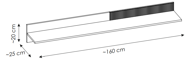 - szerokość 160 cm x wysokość 20 cm x głębokość 25 cm