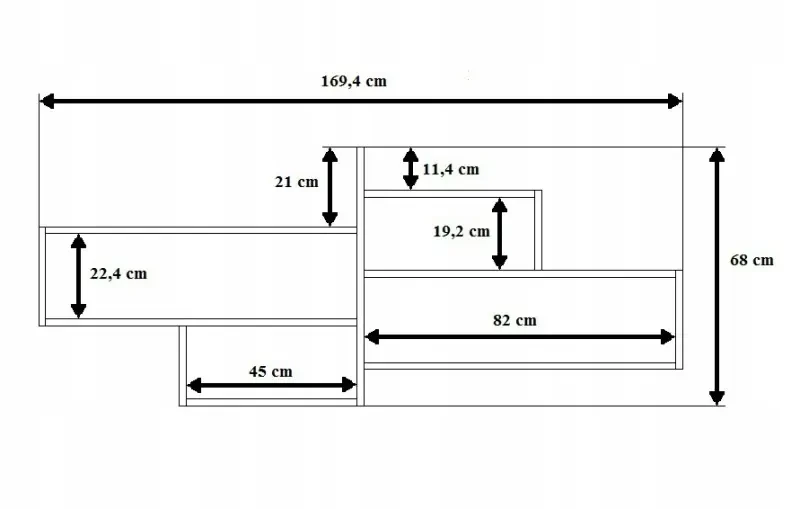 Półka wisząca Corton to propozycja pojemnej półki na książki, rośliny lub dekoracje. Składa się z 4 połączonych prostokątów w dwóch rozmiarach o ciekawym kształcie. Prosta i oryginalna forma wpasuje się do każdego wnętrza. Mebel wykonany został z solidnej płyty laminowanej o grubości 18 mm.