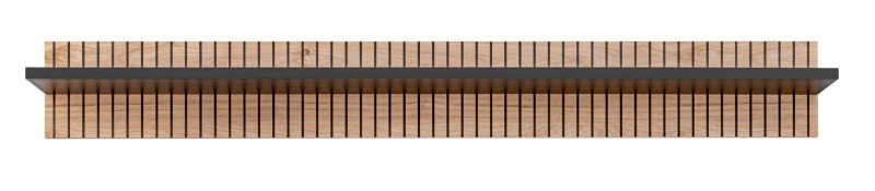 Dzięki połączeniu naturalnego koloru drewna z nowoczesnymi czarnymi elementami oraz nadrukiem subtelnych czarnych pasków, półka Liam harmonijnie wpasowuje się w każde współczesne wnętrze. Prosta konstrukcja podkreśla minimalistyczny styl, a jednocześnie zapewnia wytrzymałość i funkcjonalność. Półka może być montowana zarówno w salonie, jak i sypialni, nadając wnętrzom nowoczesny i elegancki akcent.